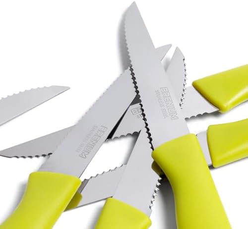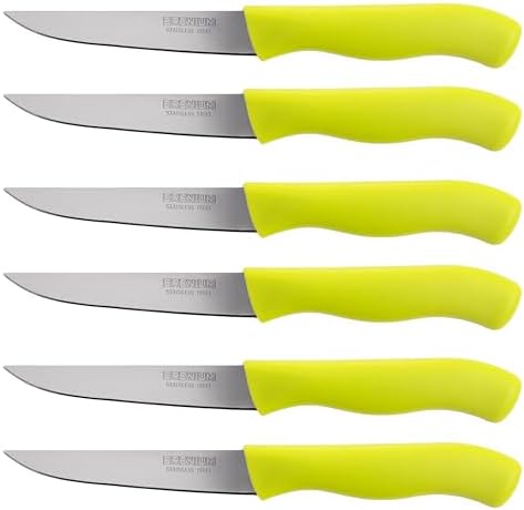 The 6-piece paring knife set is engineered for precision slicing, peeling, and coring of fruits and vegetables. Featuring 4-inch stainless steel blades with spear point edges, these knives provide professional-level sharpness and reach for effortless kitchen prep. Ergonomic, non-slip handles ensure comfort and control during extended use.