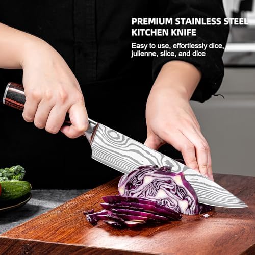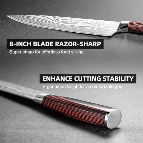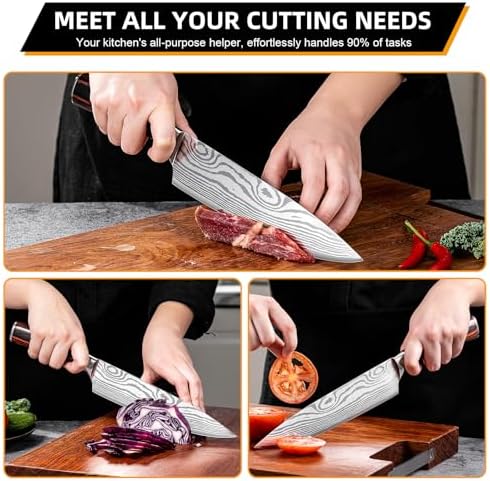 Razor-sharp 8-inch blade effortlessly dices, slices, and minces