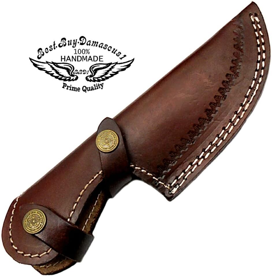 Comes with premium leather sheath with double-stitching and brass button