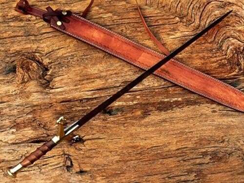 Forged from a high-carbon steel and iron blend, the Damascus sword undergoes a rigorous process of layering, folding, and hammering. This meticulous craftsmanship creates the blade’s signature water-like ripples, making every Scottish Claymore sword a one-of-a-kind work of art. The careful selection of materials ensures incredible durability, sharpness, and edge retention—qualities that define a true warrior’s blade.