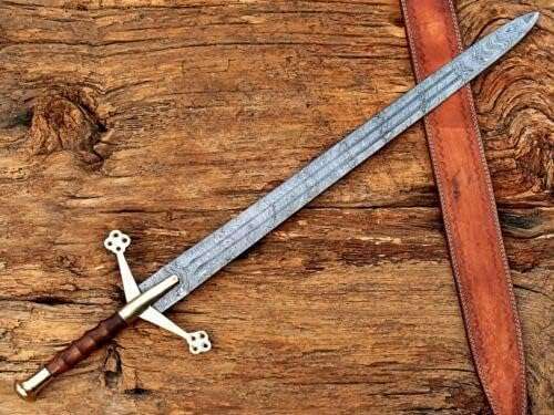 The Scottish Claymore sword is one of the most legendary and recognizable weapons in history. A powerful Scottish sword, this two-handed weapon first appeared in the early sixteenth century and evolved from the traditional Scots-Irish single-handed sword. Known for its impressive length and devastating power, the Damascus sword version of the Claymore enhances its historical significance with unmatched craftsmanship and beauty. 🗡️💎