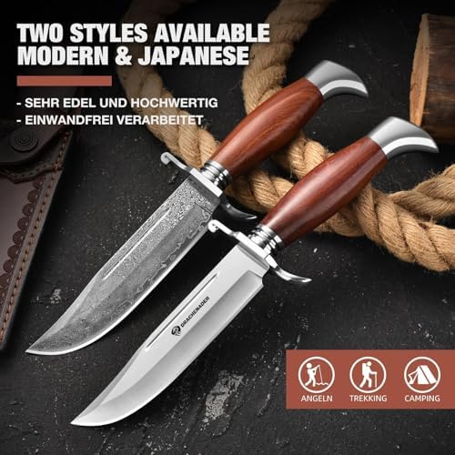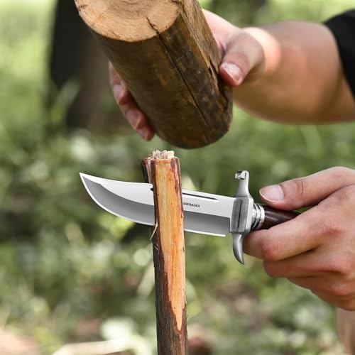 This bushcraft bowie knife blends traditional design with refined materials. The long, powerful blade paired with a natural rosewood handle offers a balance of cutting performance, visual appeal, and outdoor practicality that stands apart from ordinary fixed blades.
