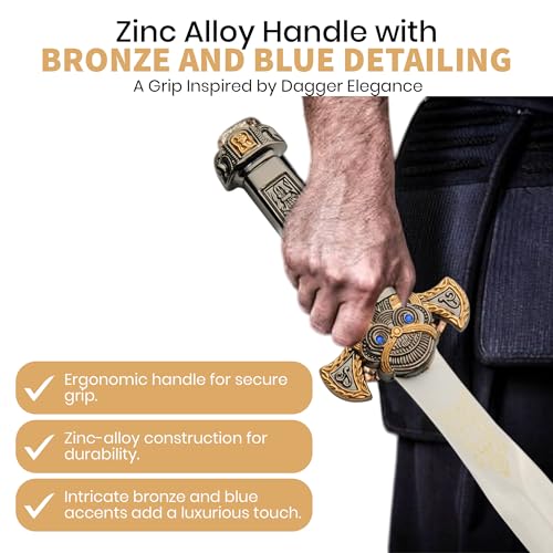 The Bronze Nile Ancient Egypt Dagger Knife is a meticulously crafted replica that brings the elegance and history of Ancient Egypt to life. With a decorative Egyptian-style handle, cross guard, and pommel, this dagger is perfect for collectors, cosplayers, and history enthusiasts. Ideal for display or as a unique addition to your costume arsenal, this dagger embodies both style and functionality.