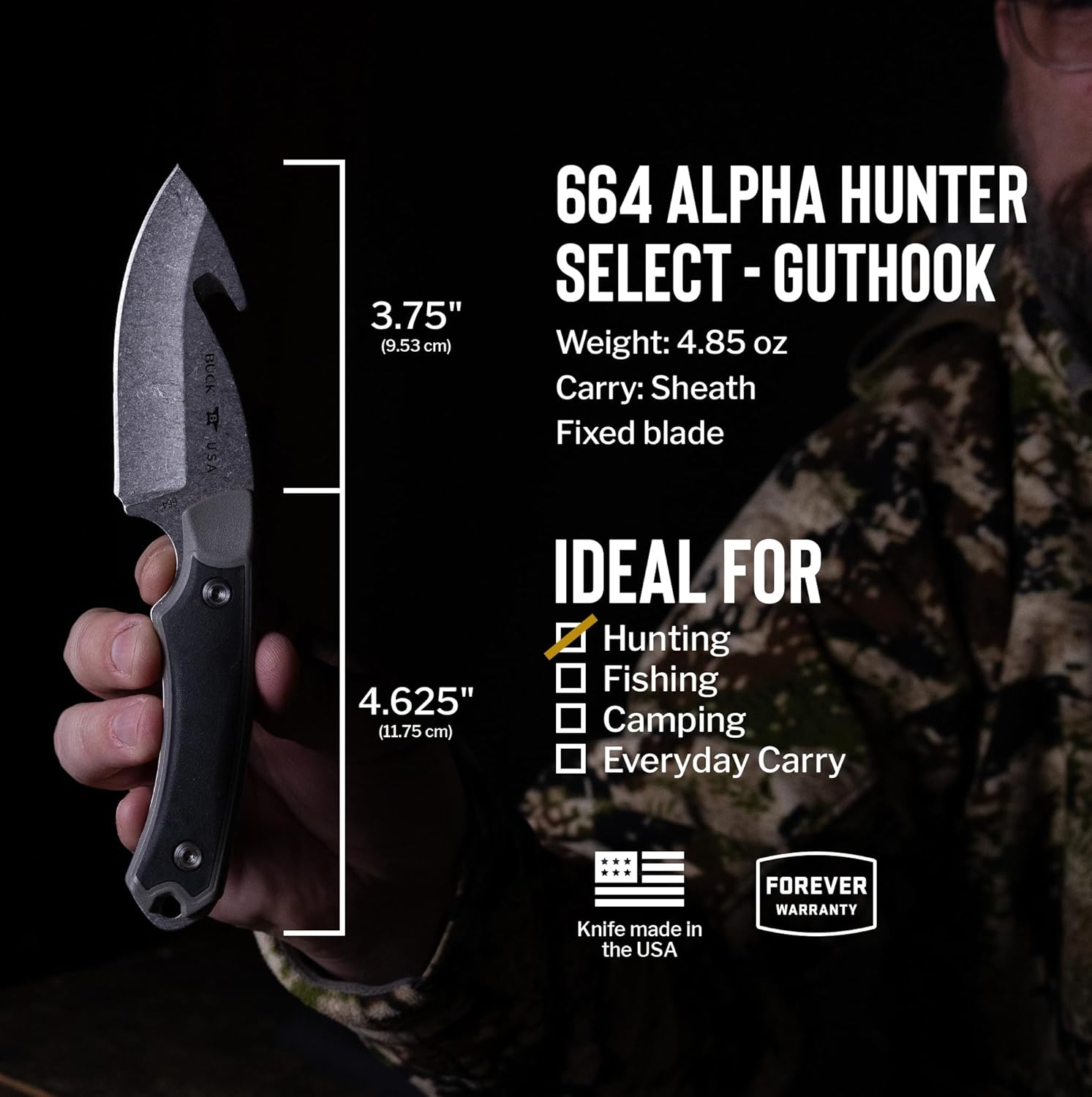 Buck Knives Hunting Knife Alpha Hunter Fixed Blade with Guthook mega blades