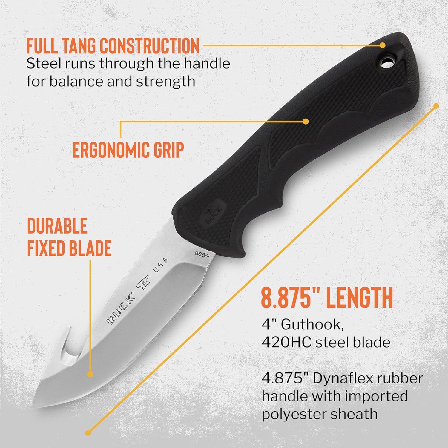 BuckLite Max II Guthook Hunting Knife 4″ Fixed Blade mega blades