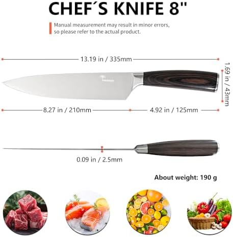 Ultra-sharp 8-inch blade for precise cuts of meat, vegetables, and herbs