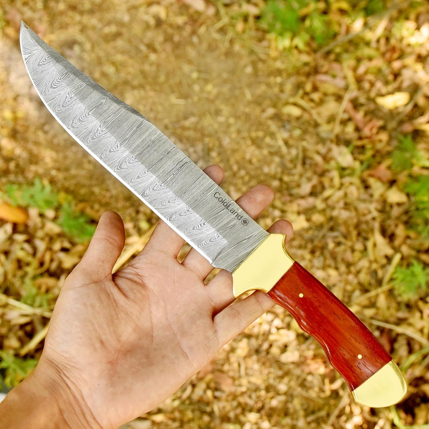 ColdLand Bowie Knife 13.75″ Handmade Damascus Steel with Sheath Mega Blades