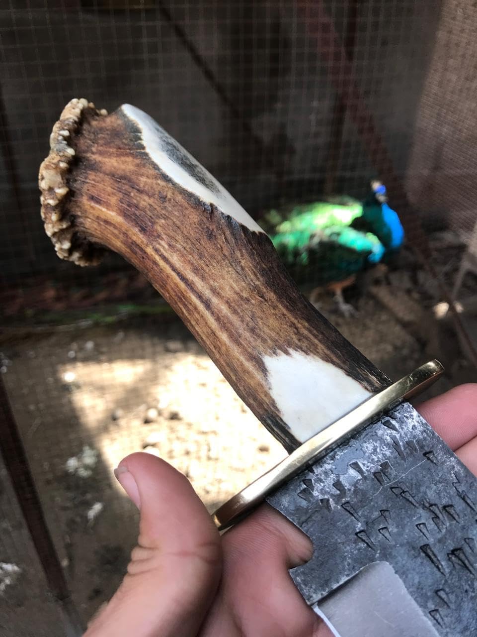 Distinctive artificial stag horn handle enhances grip and appearance
