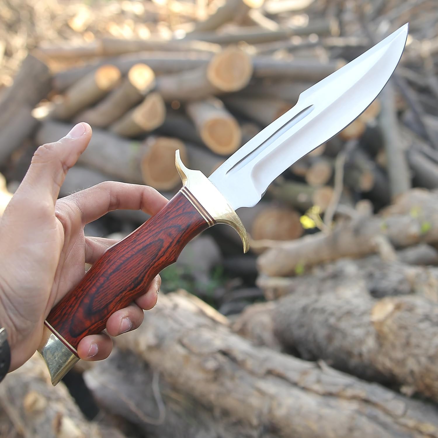 This Bowie knife delivers reliable cutting power 💪, excellent balance ⚖️, and long-term durability. The sharp stainless steel blade resists corrosion 🛡️ while maintaining its edge, making it ideal for hunting, camping, survival tasks, and outdoor adventures.