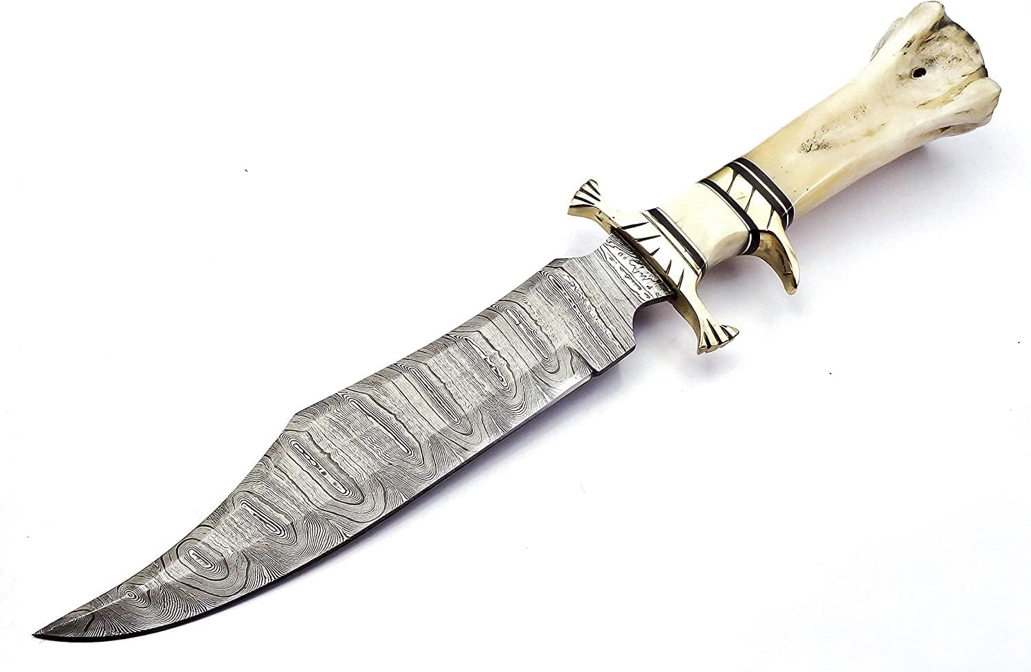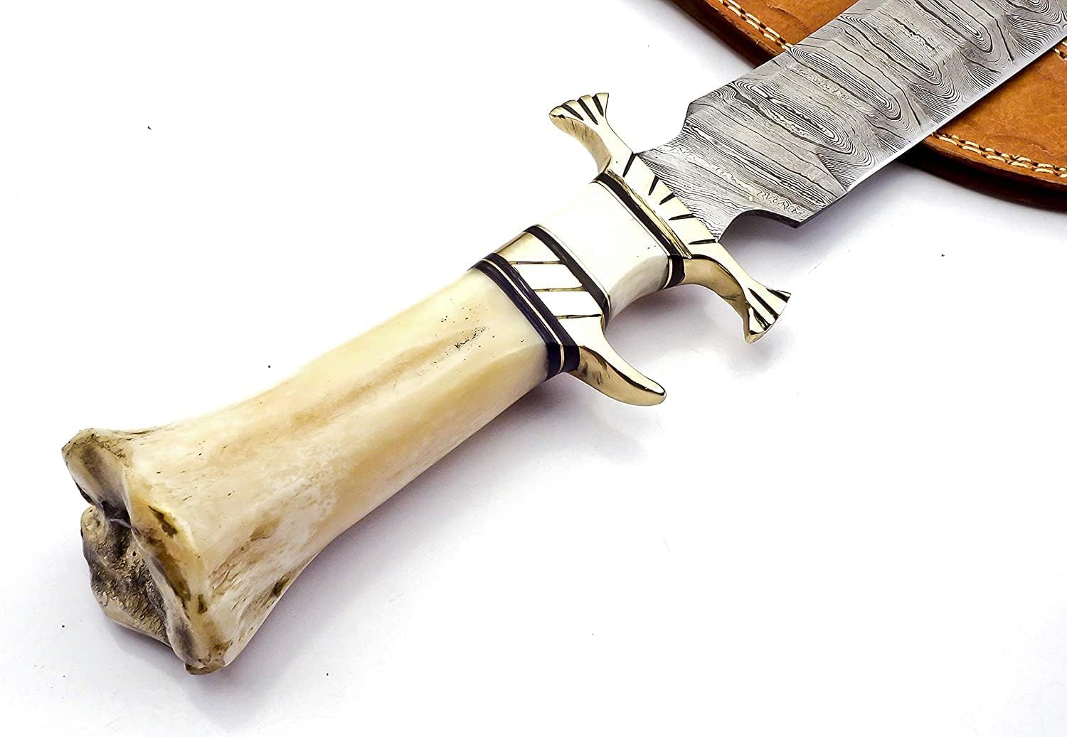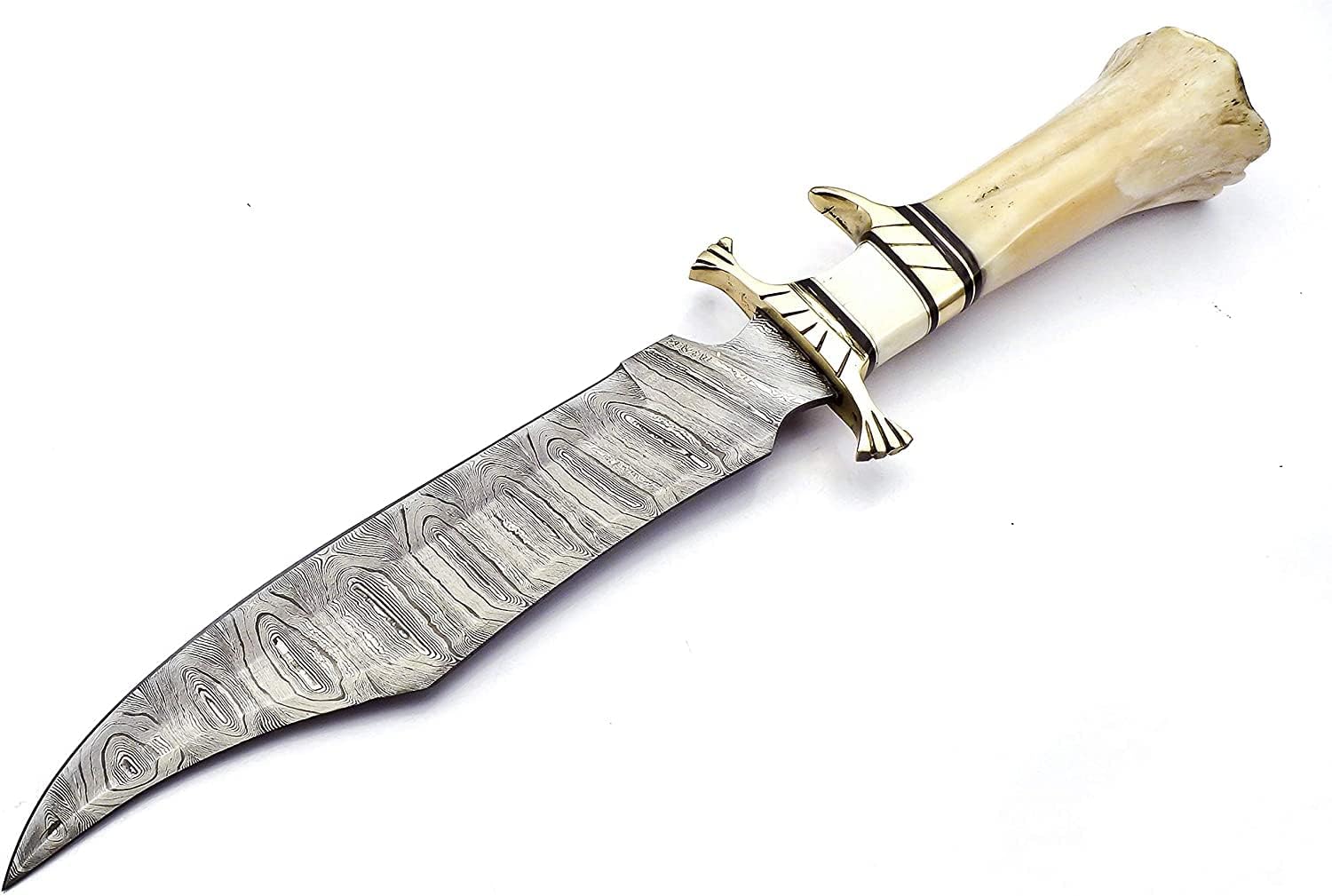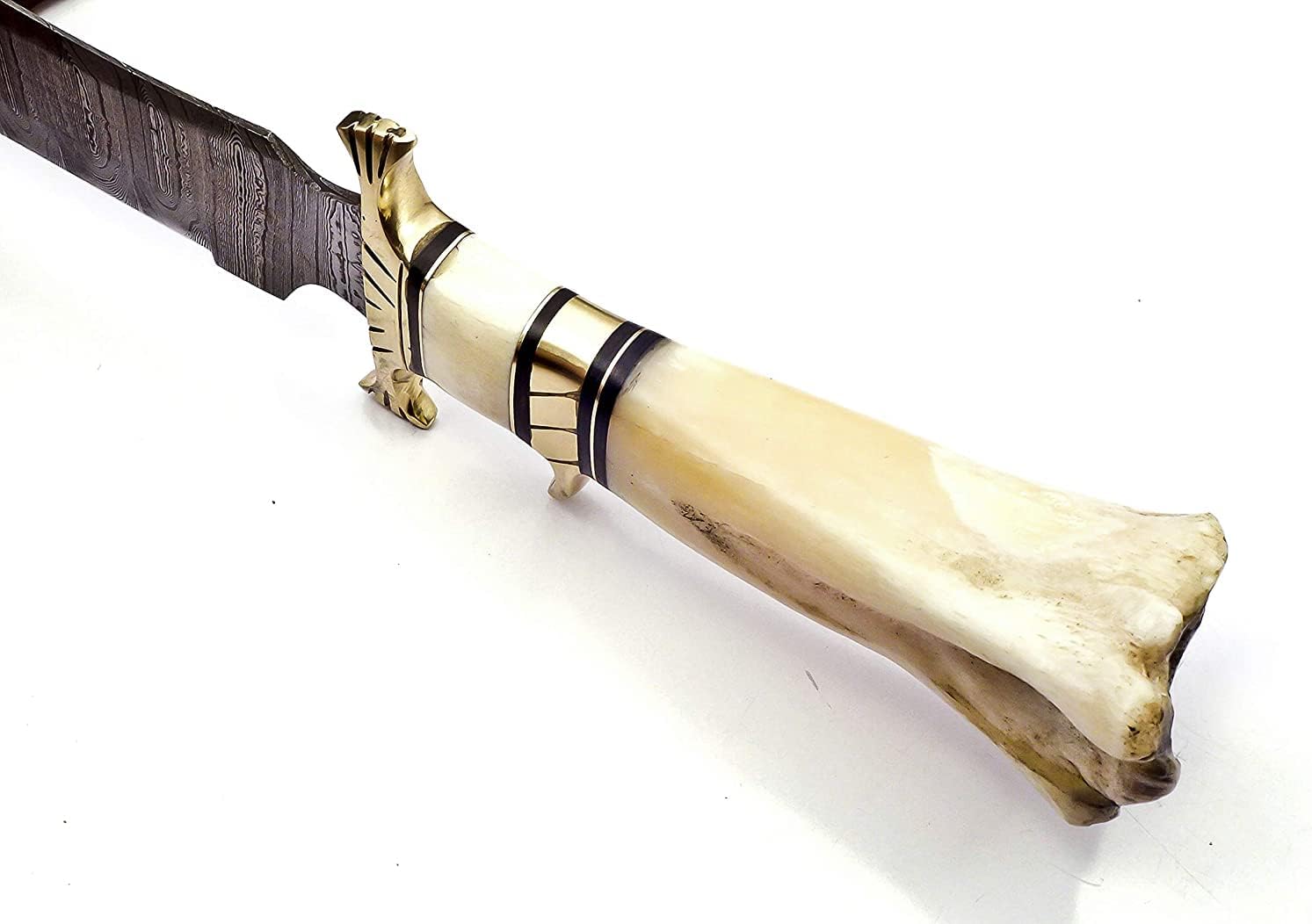 Custom Hand Made Damascus Steel Hunting Knife with Camel Bone mega blades