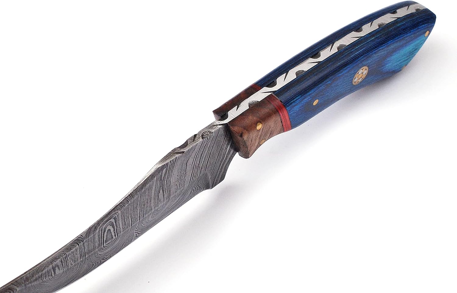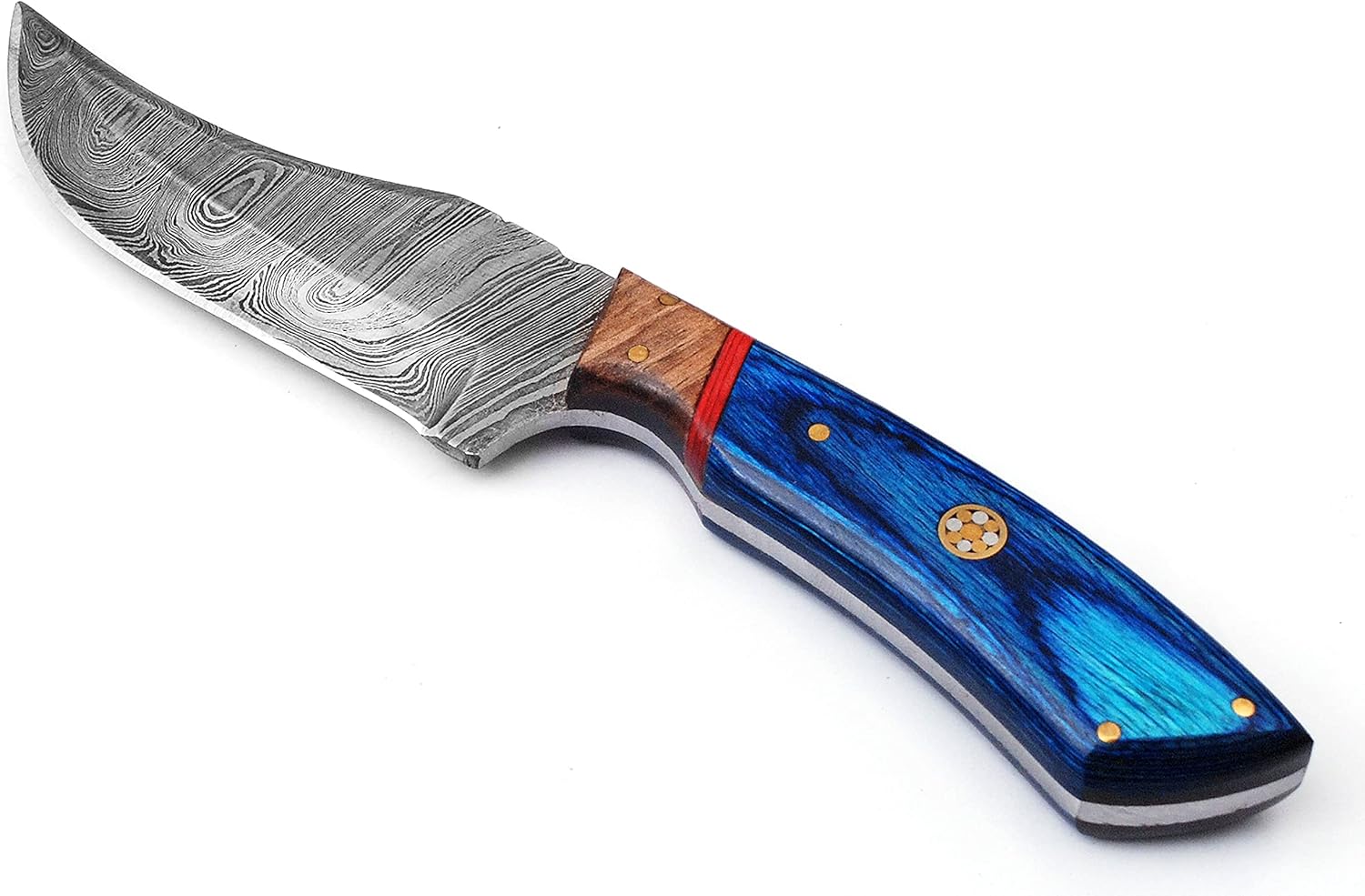 Custom Handmade Damascus Hunting Knife with Blue Pakka Handle mega blades