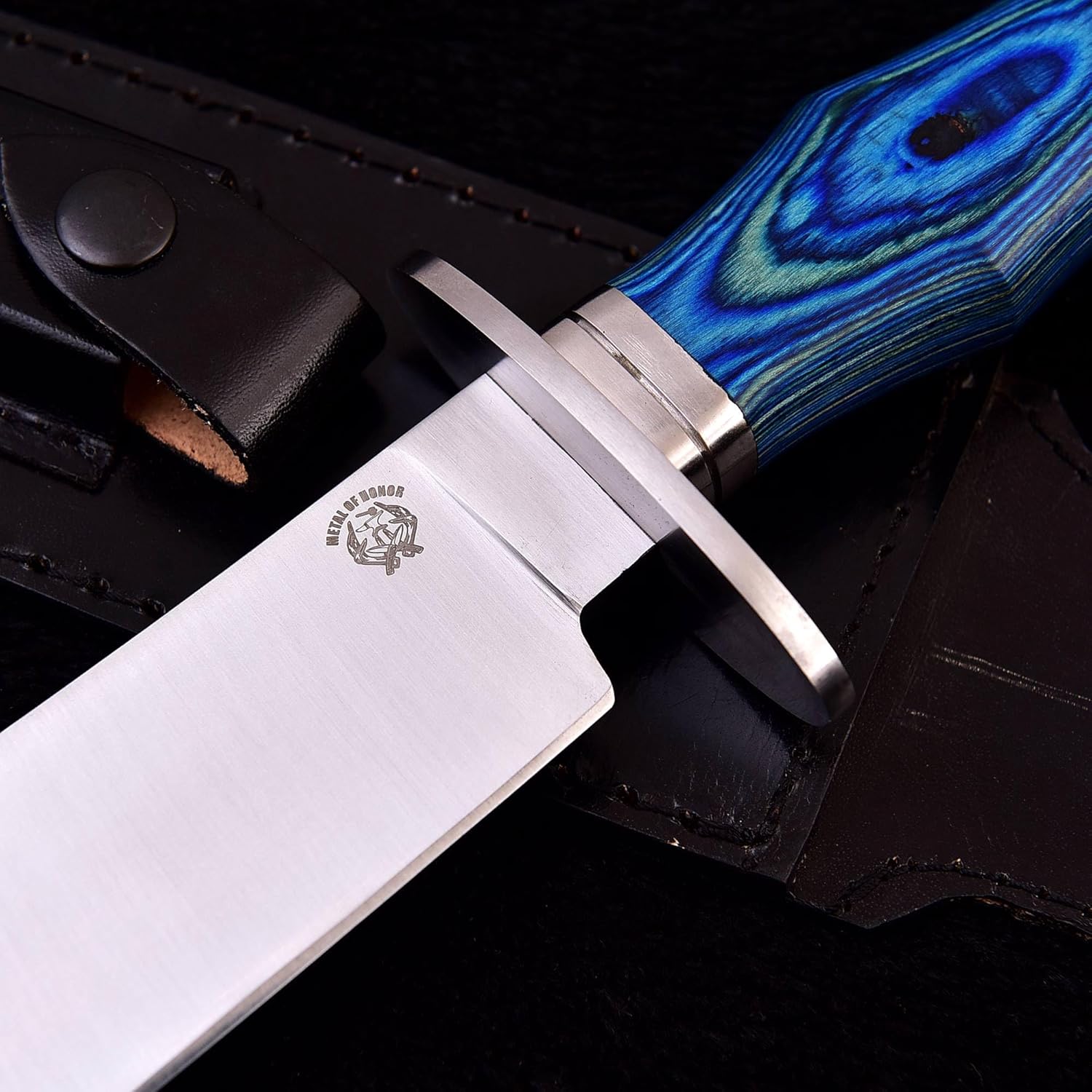 The D2 Bowie Knife by METAL OF HONOR is a powerful fixed blade designed for serious outdoor and survival use. With its long razor-sharp blade, full tang construction, and comfortable wood handle, this tactical knife delivers strength, balance, and reliability for camping, hunting, and bushcraft adventures.