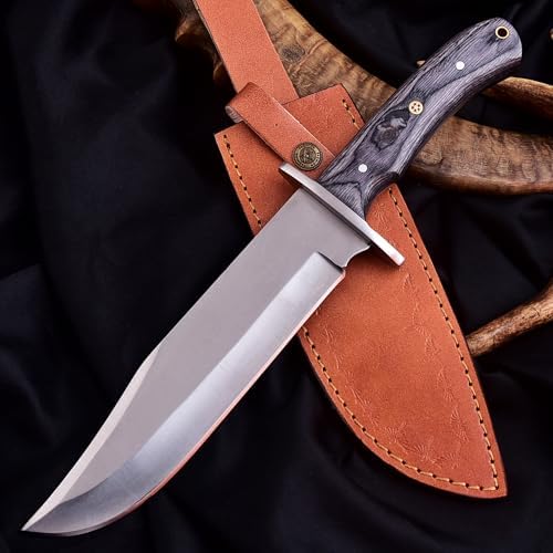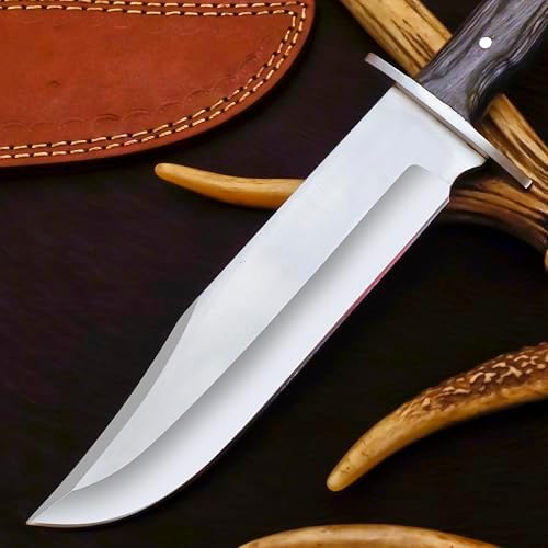 This Premium Handmade Bowie Knife combines traditional craftsmanship with tactical performance. Its full tang D2 steel blade and ergonomic Pakka wood handle make it a reliable outdoor companion, while the included leather sheath enhances portability and safety. Perfect for survivalists, hunters, and collectors.