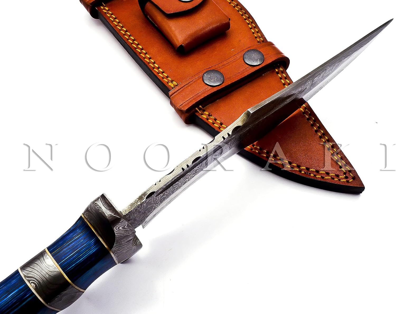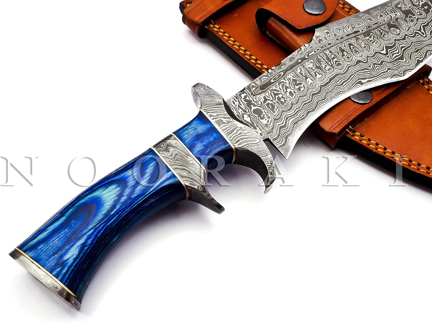 NOORAKI Handmade Damascus Bowie Knife for Serious Outdoor Use