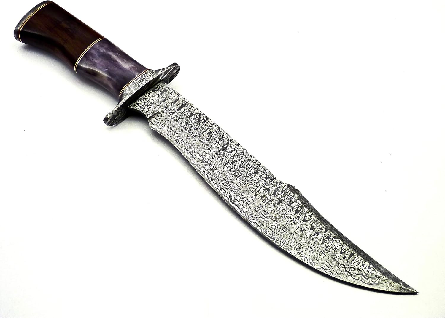 Damascus Bowie Knife Handmade Full Tang with Leather Sheath mega blades