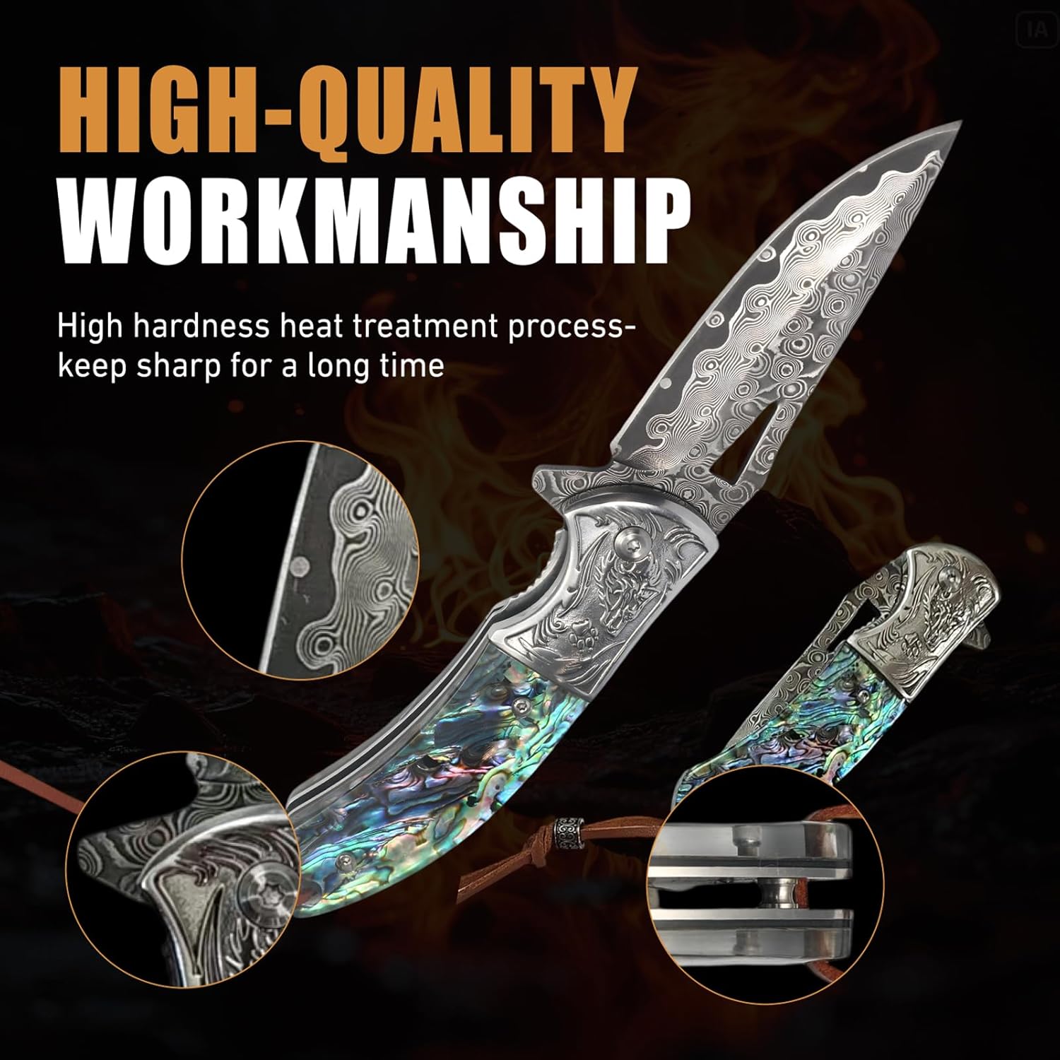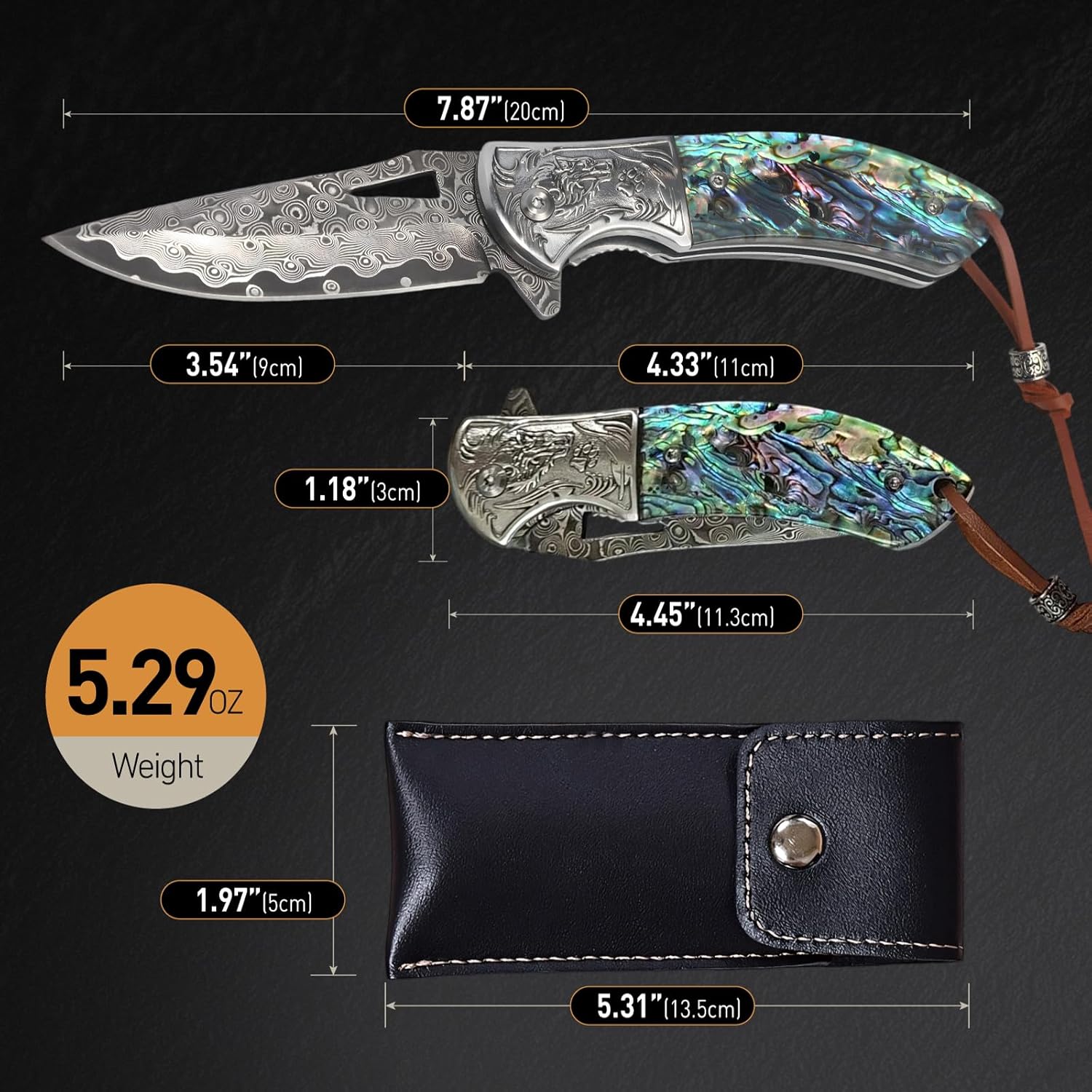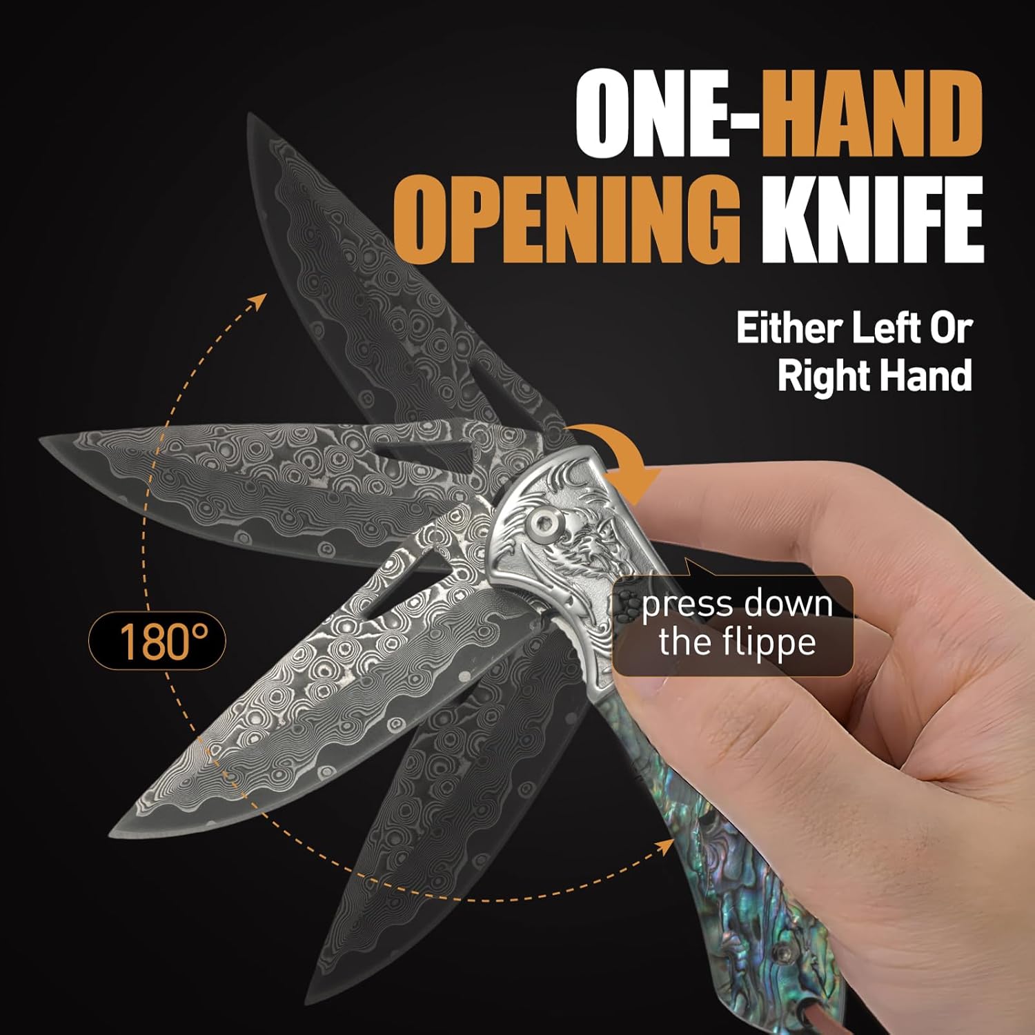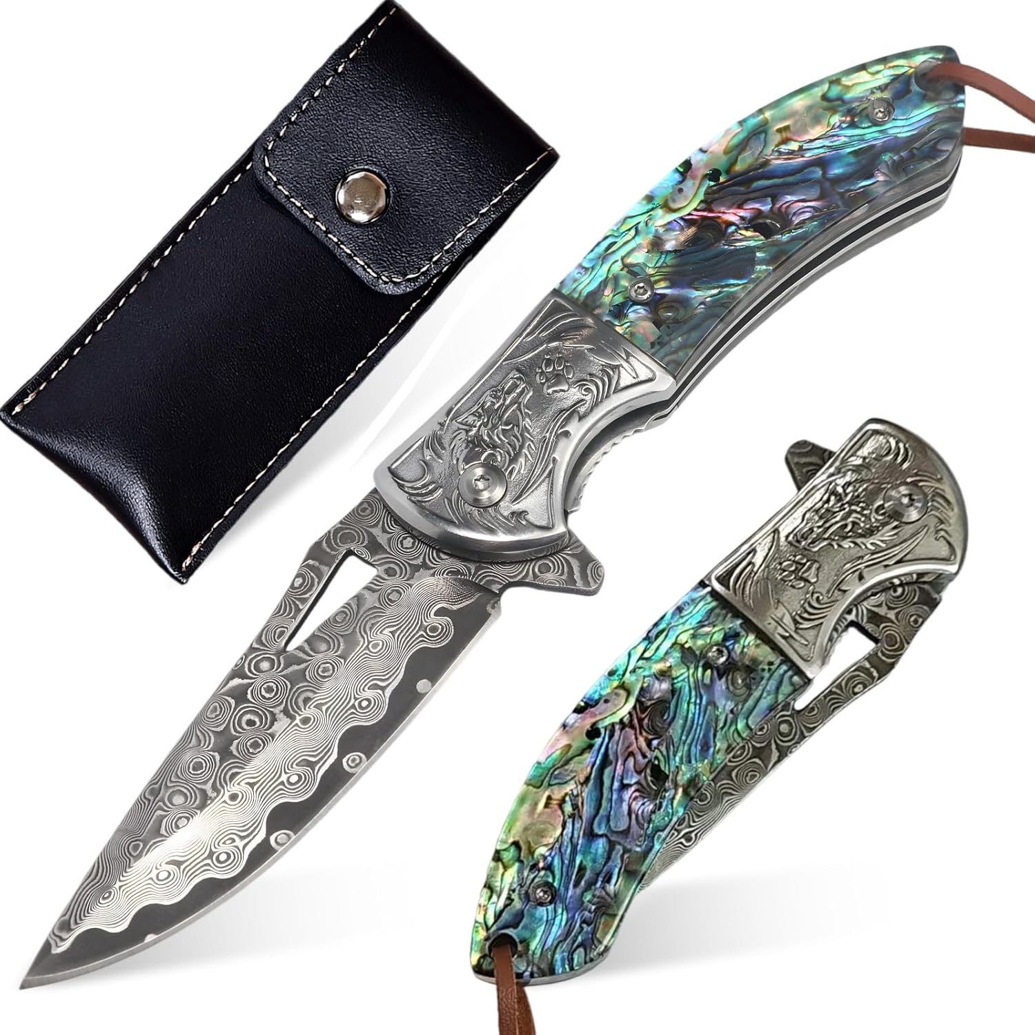 Damascus Folding Knife – Handmade Abalone EDC Pocket Knife mega blades