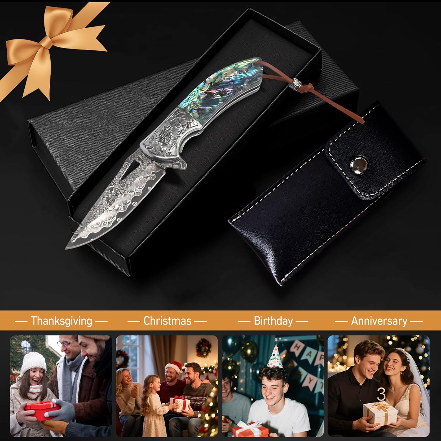 Comes with premium leather sheath and black gift box