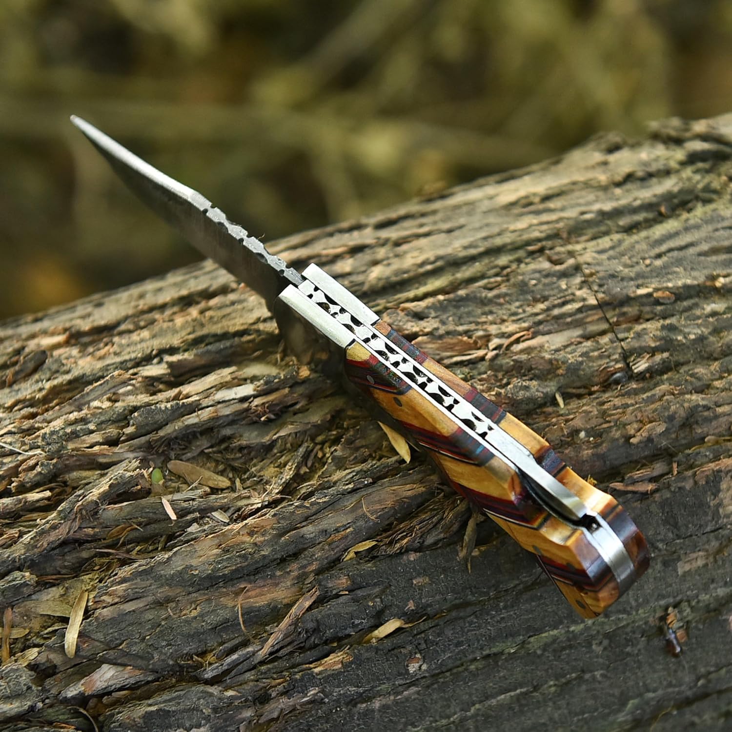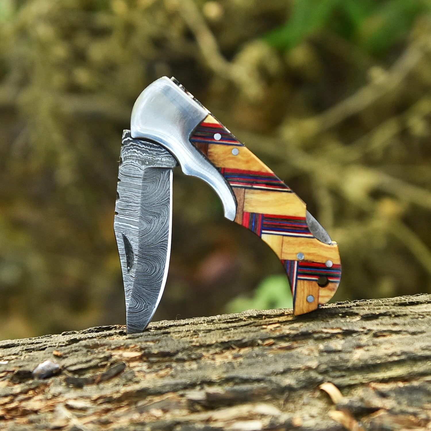Damascus Folding Knife Handmade Olive-Wood Pocket Knife Gift mega blades