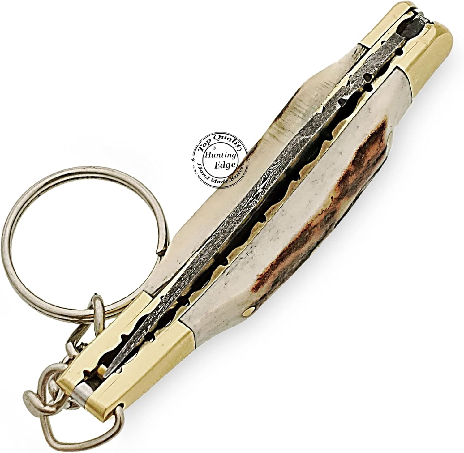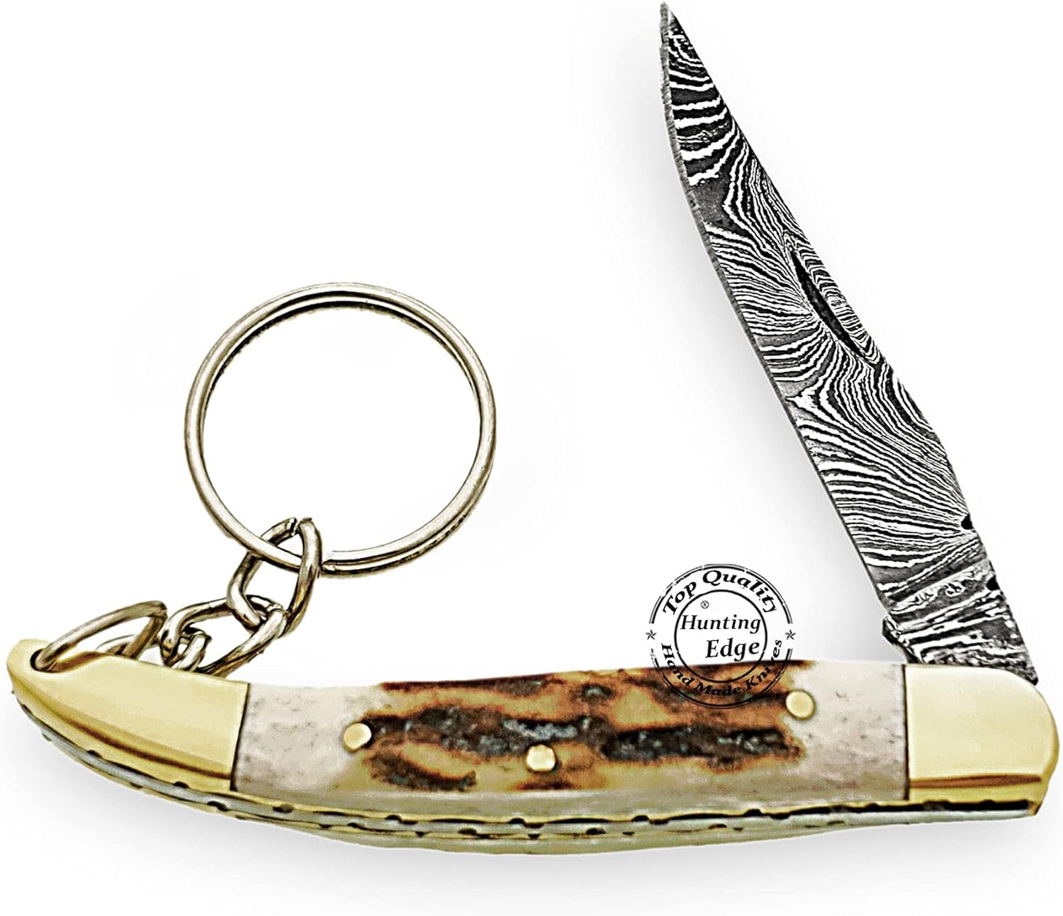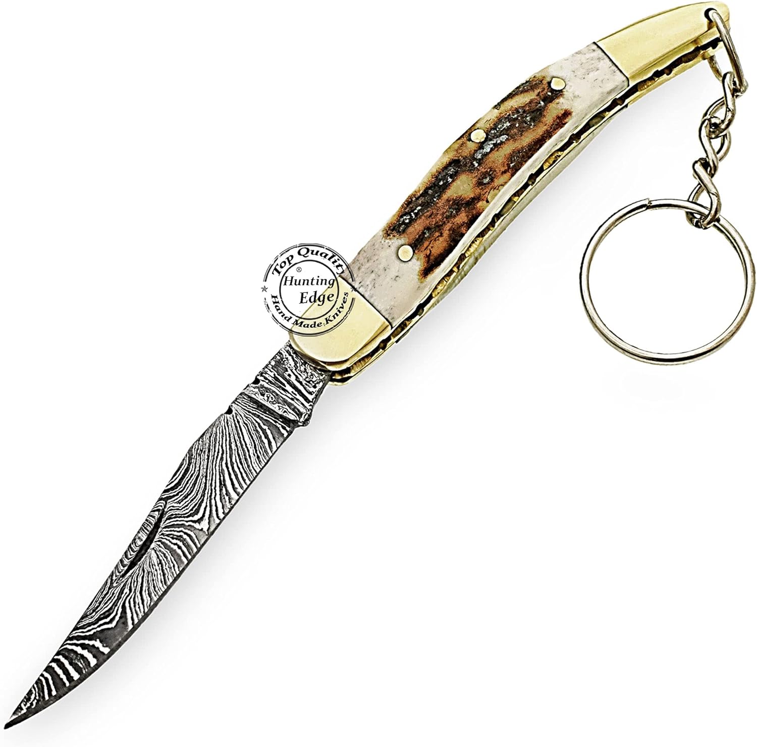 The Damascus Folding Pocket Knife by Hunting Edge is a compact, handcrafted knife designed for hunters and outdoor enthusiasts. Featuring a razor-sharp Damascus steel blade and a natural stag horn handle, this knife combines durability, elegance, and everyday practicality.