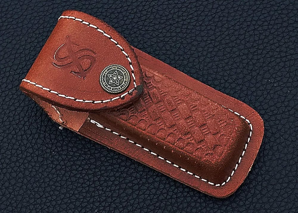 Includes premium leather sheath with brass button