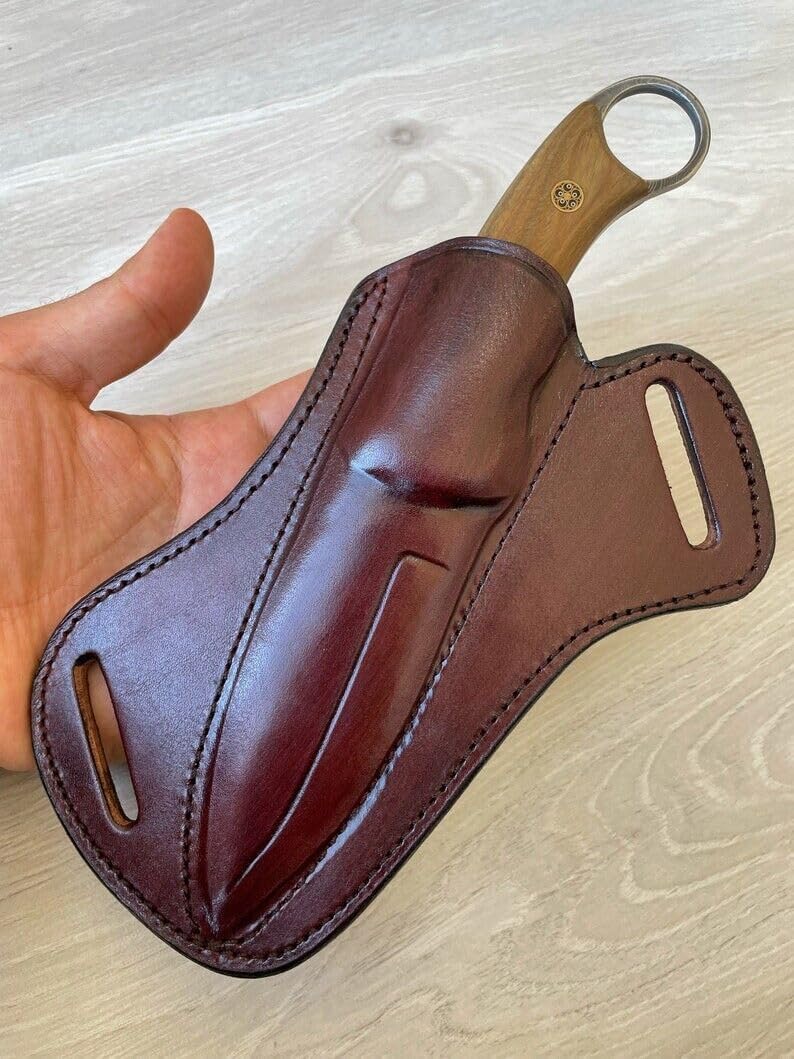 Clean the blade after every use and dry it immediately. Apply a light coat of oil to the blade to prevent rust. Avoid dishwasher cleaning. Store the knife in its leather sheath in a dry place when not in use.