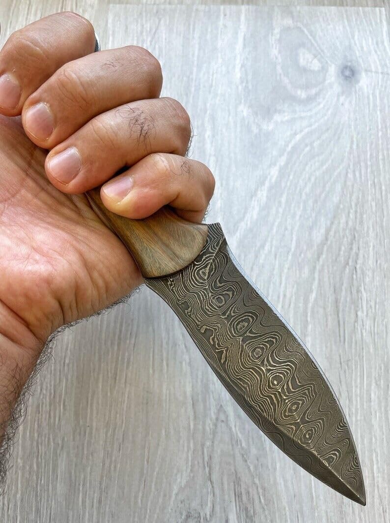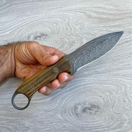 This Damascus Hunting Knife features a handmade razor-sharp blade, full tang strength, and ergonomic handle for superior control. Perfect for hunting, camping, and survival tasks, it includes a leather sheath and offers durability, balance, and unique Damascus craftsmanship.
