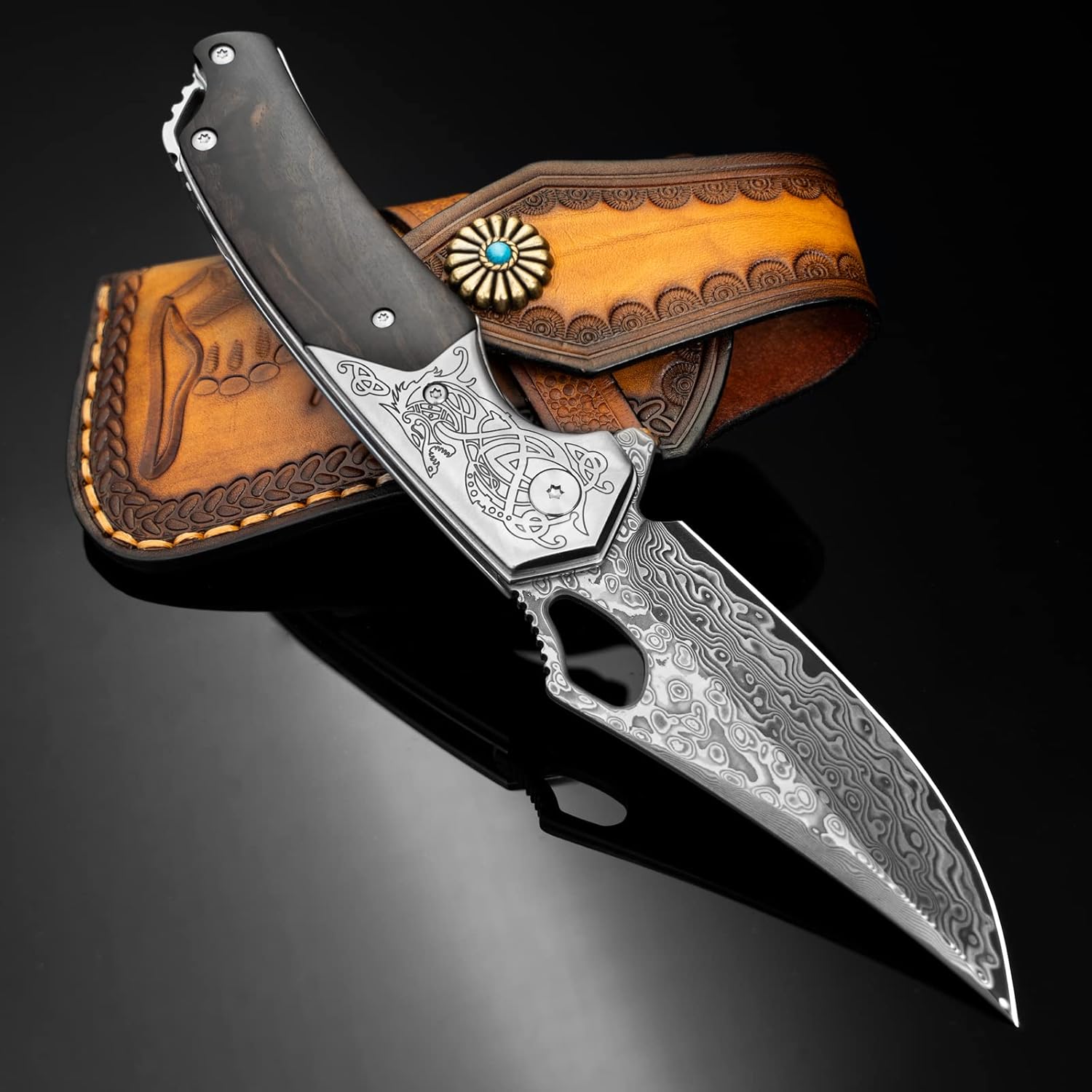Experience the perfect blend of craftsmanship, style, and functionality with the Damascus Pocket Knife by NedFoss. Expertly handmade from 67 layers of premium VG10 Damascus steel, this folding knife offers unmatched sharpness, durability, and a smooth one-handed deployment. Ideal for outdoor, EDC, and gift purposes.