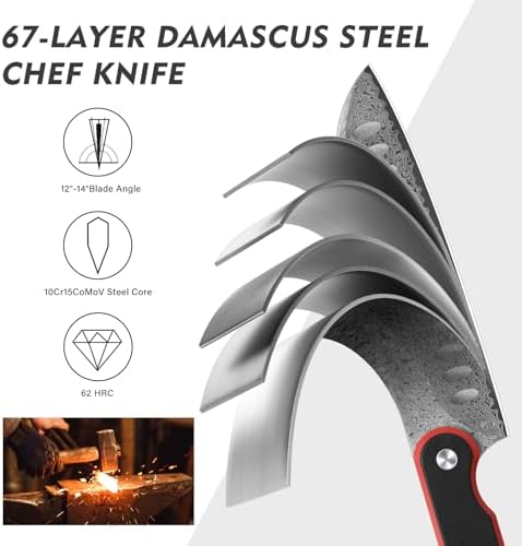 67-layer Damascus steel construction with 10Cr15CoMoV core