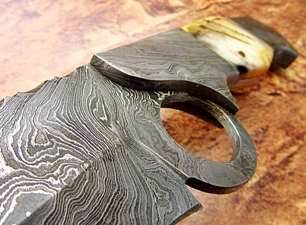 🔥 Hand-forged Damascus steel blade with sharp cutting edge
