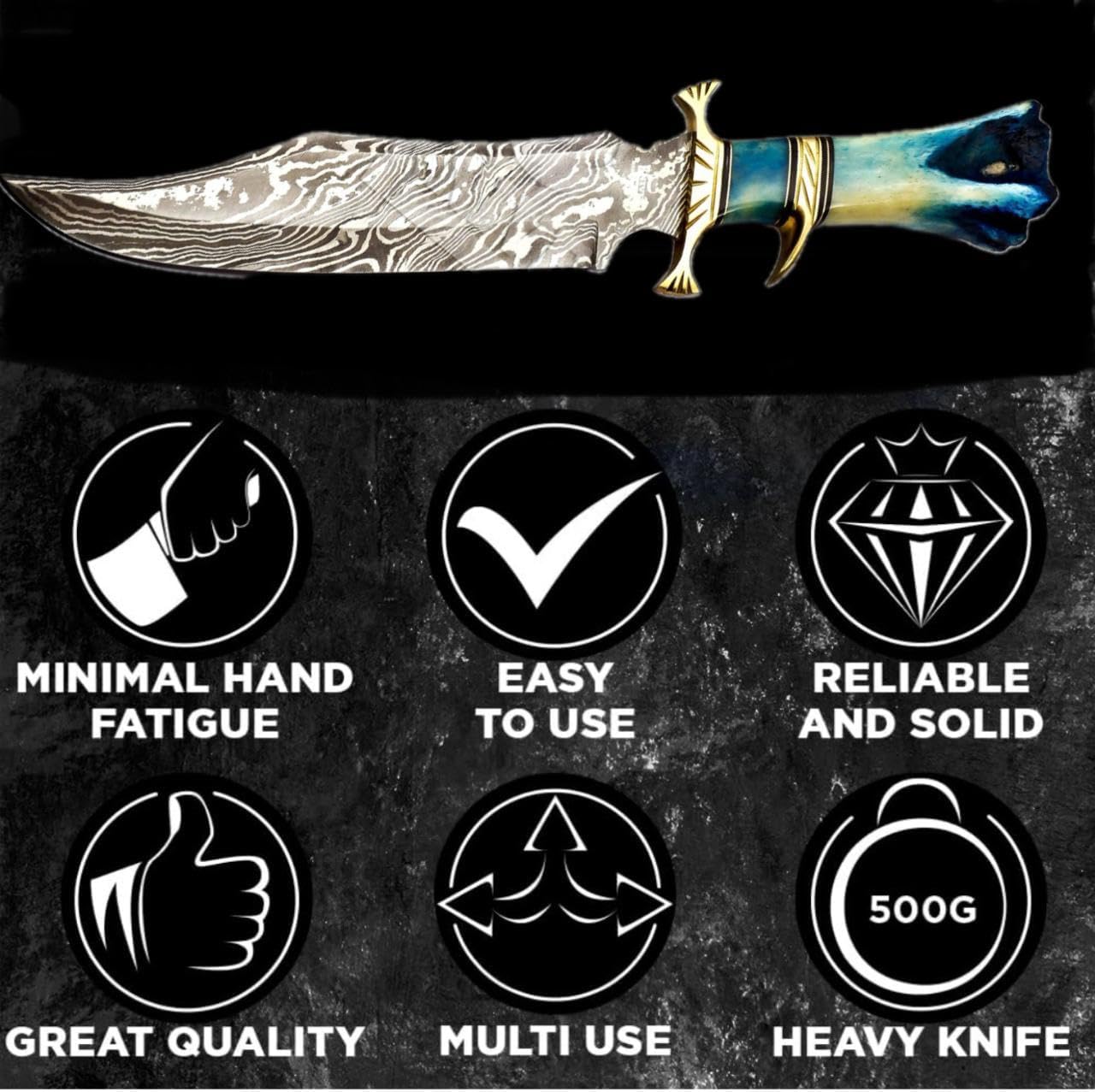 This Damascus Steel Bowie Knife is backed by a craftsmanship warranty against manufacturing defects ✔️. Designed for durability and long-term performance, it’s built to serve reliably for years—whether in the field or as part of a premium knife collection.