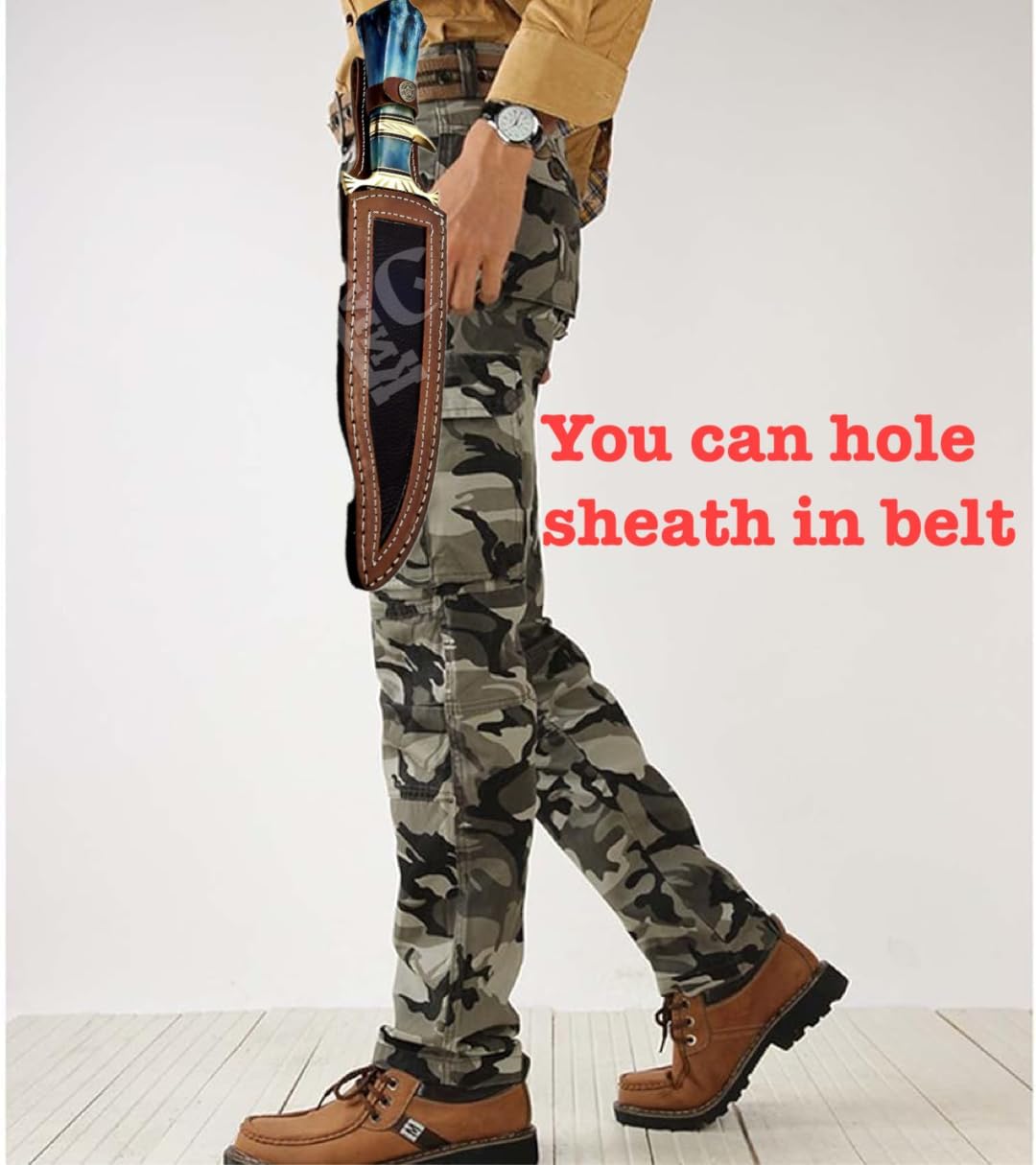 This Handmade Damascus Steel Bowie Knife is a powerful blend of traditional design and modern utility ⚔️. With an impressive 15.5-inch overall length and razor-sharp blade, it’s built for hunting, camping, survival, and tactical applications—while also serving as a striking collectible for knife enthusiasts.