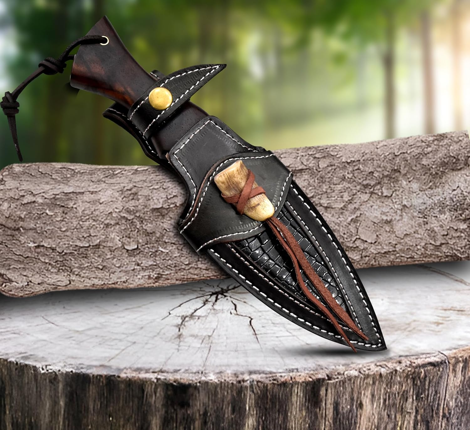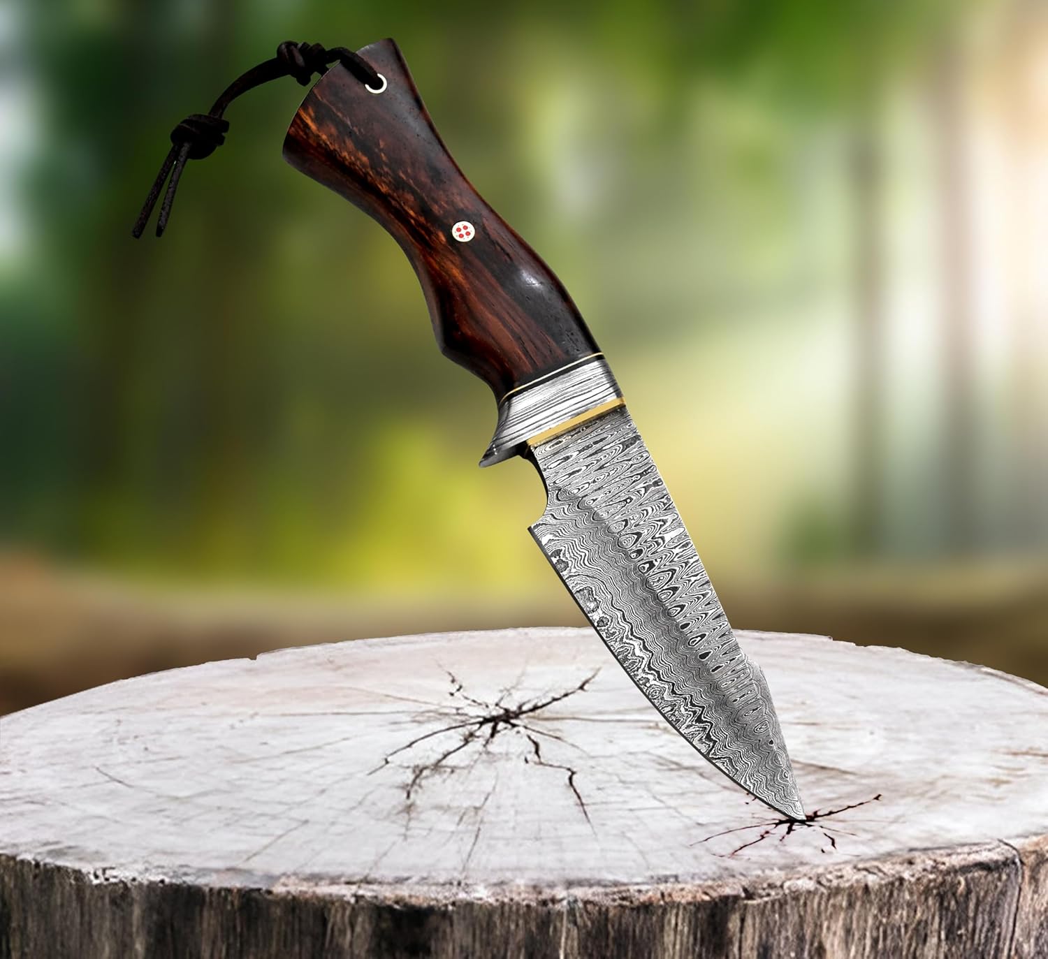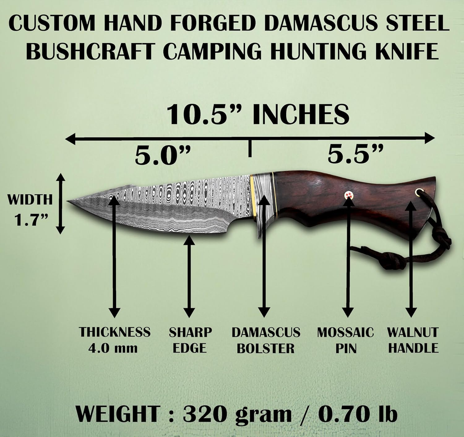 The Damascus Steel Hunting Knife by Hercules Knives is a powerful fixed blade designed for camping, hunting, bushcraft, and survival use. Handcrafted with layered Damascus steel and a walnut wood handle, this knife delivers strength, balance, and long-lasting sharpness for outdoor professionals and enthusiasts.