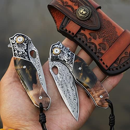 This Damascus steel pocket knife combines traditional Japanese-inspired craftsmanship with modern EDC performance. Featuring a VG10 core blade forged with 67 layers and a refined folding design, it delivers exceptional sharpness, strength, and elegance for everyday carry, outdoor adventures, and collection value.