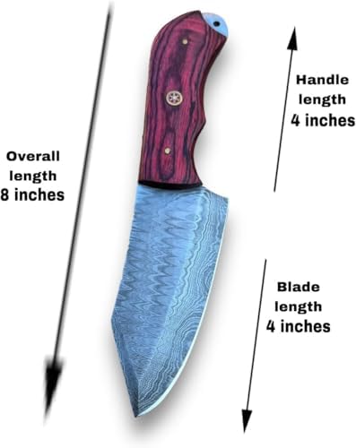 This 8-Inch Skinning Knife is designed for superior performance in outdoor environments. Its Damascus steel blade ensures clean, precise cuts, while the ergonomic wooden handle delivers comfort and control. Perfect for hunters, campers, and bushcraft enthusiasts, it enhances your survival and field processing capabilities.