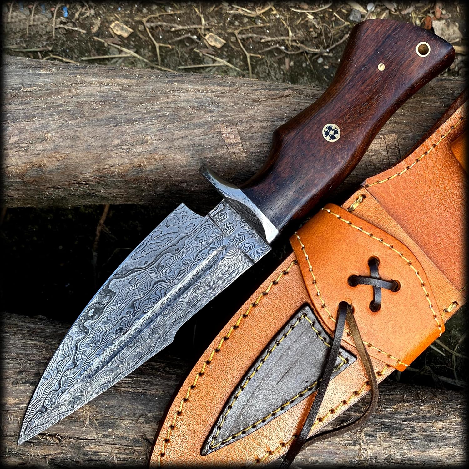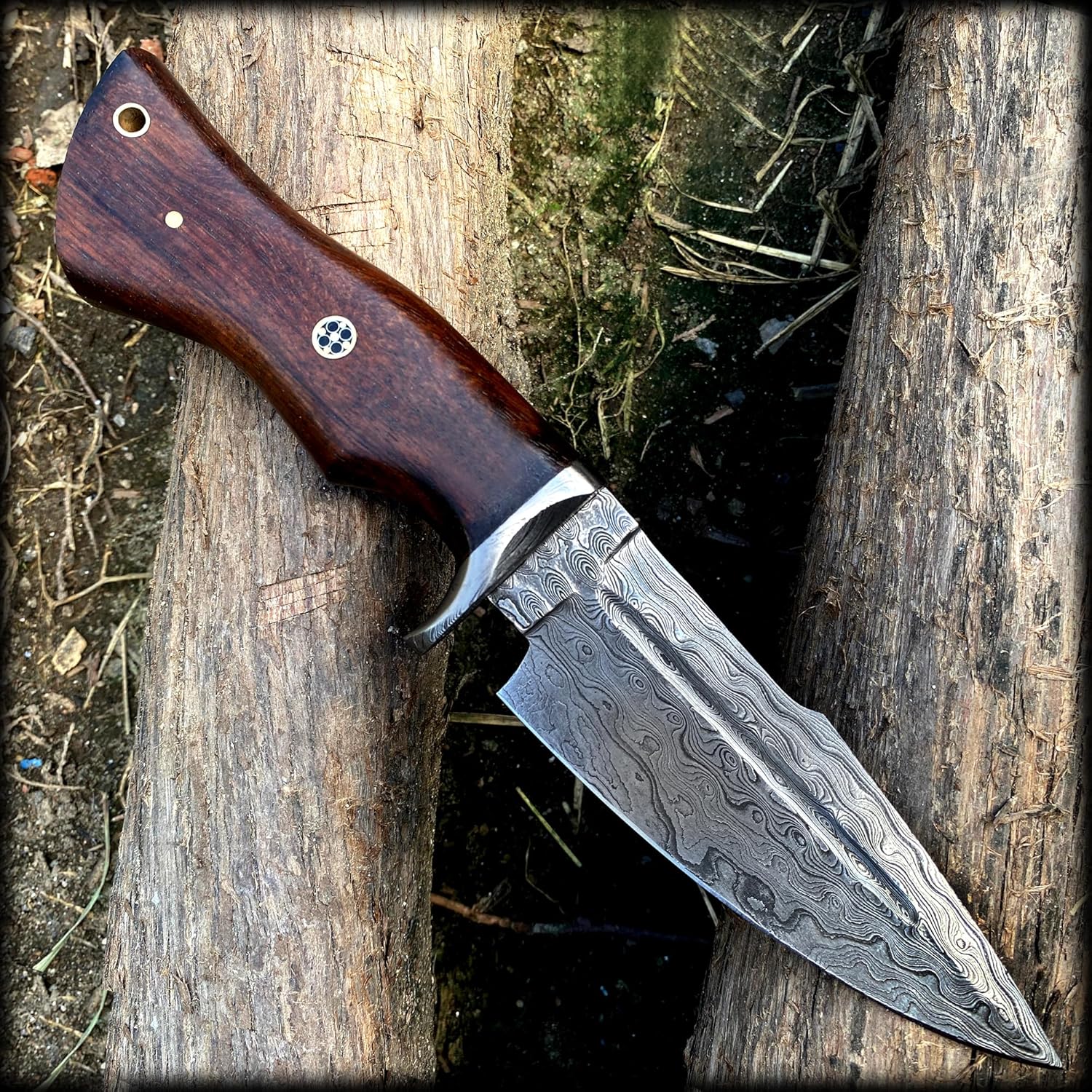 The Damascus Steel Tracker Knife by BLACK WOLF KNIVES is a premium handmade hunting and survival knife, featuring a full tang Damascus steel blade and walnut wood handle. Designed for campers, hunters, and bushcraft enthusiasts, this knife combines craftsmanship, durability, and precision for all outdoor activities.
