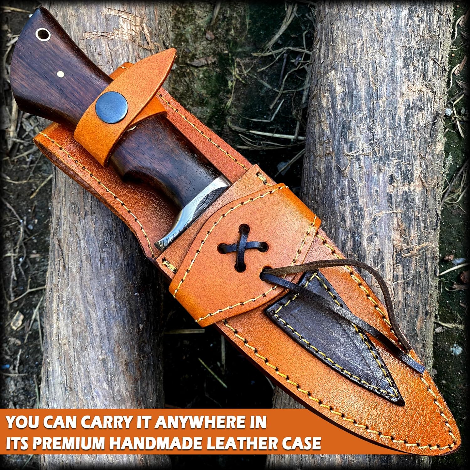 Includes handcrafted cowhide leather belt sheath for secure carry