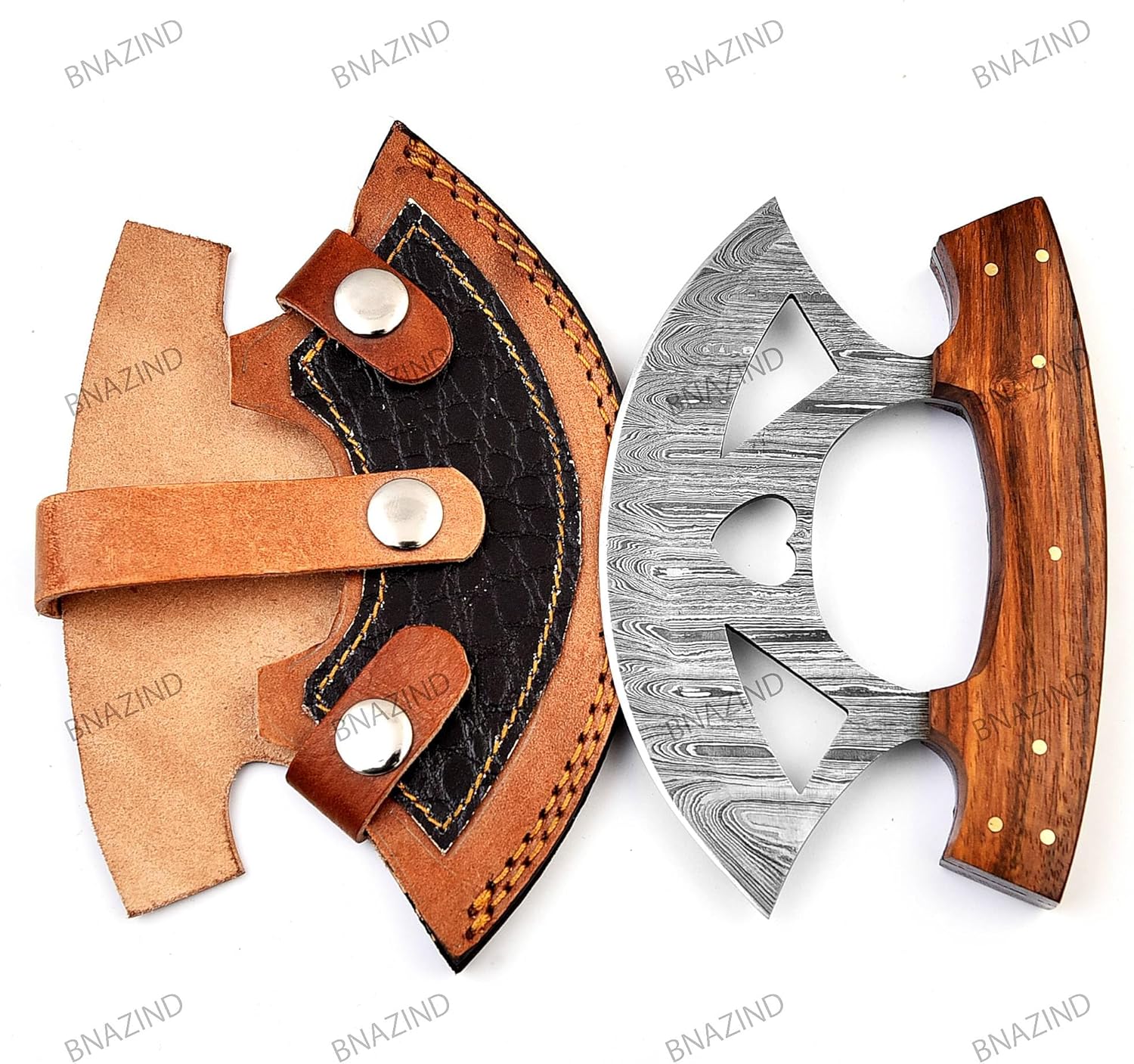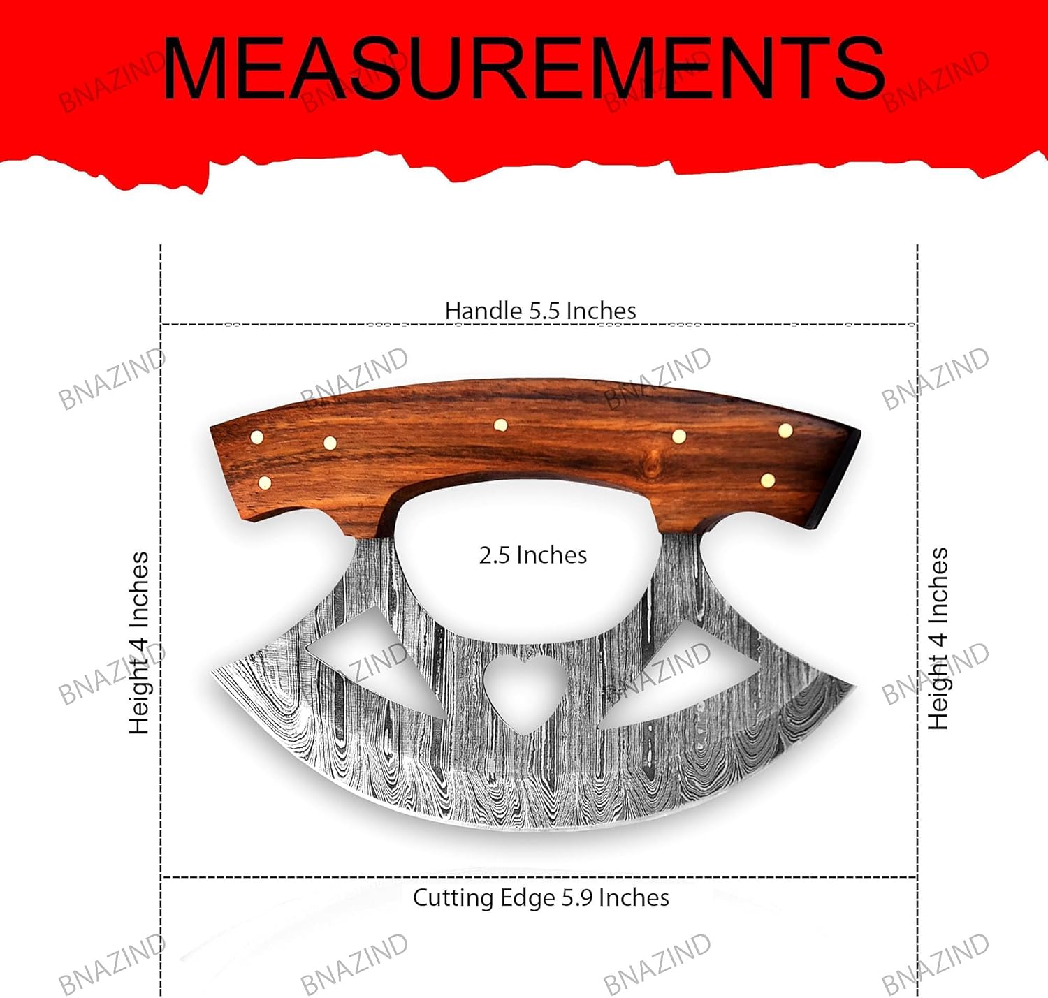 Damascus Ulu Knife 5.75″ Handmade Alaskan Mezzaluna Cutter mega blades