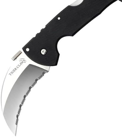 • Hybrid karambit and hawkbill blade geometry