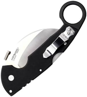 • Hybrid hawkbill/karambit blade design for slicing and utility cuts