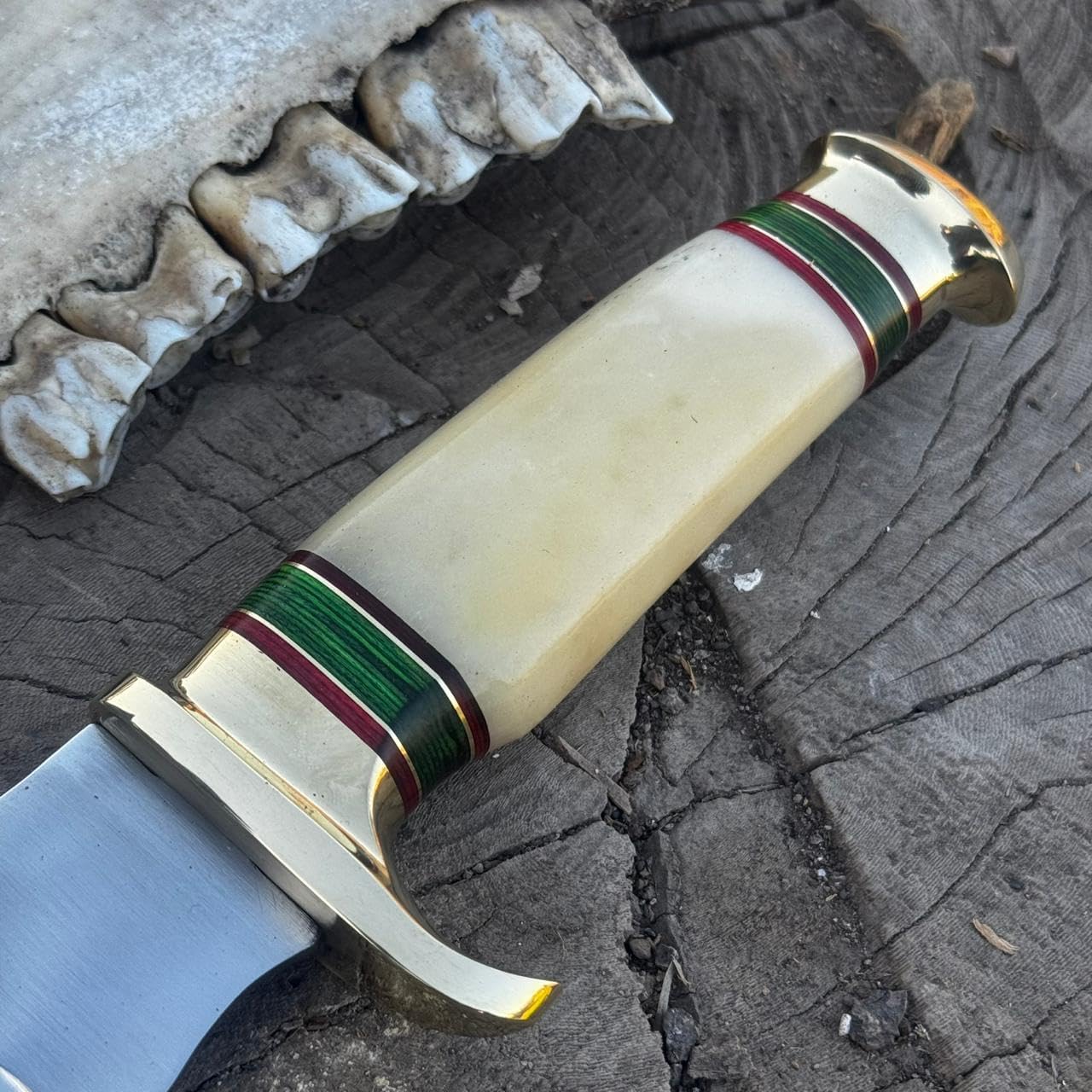 Bone, Paka wood, and brass handle for ergonomic and firm grip