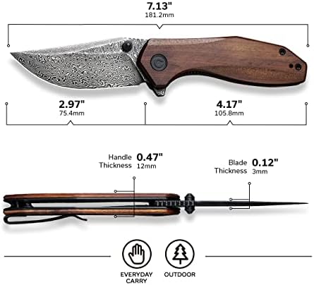 Built for reliability and refined everyday carry, this EDC Pocket Knife delivers outstanding cutting performance in a sleek, compact form. Featuring a 2.97-inch Damascus steel blade with a versatile compound grind, it balances sharpness, edge retention, and corrosion resistance. Paired with a smooth Cuibourtia wood handle and a lightweight folding design, this knife is ideal for daily utility, hiking, camping, fishing, and outdoor tasks.