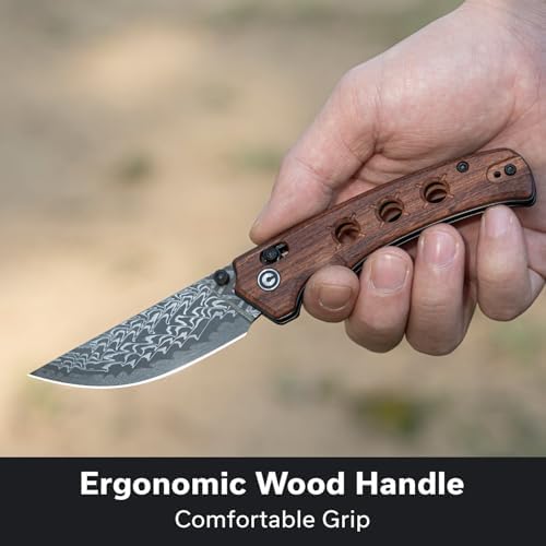 Folding Pocket Knife with Damascus Blade – Wood Handle EDC | Mega Blades