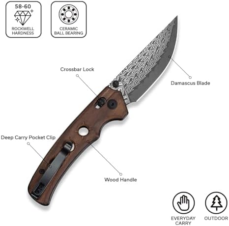The pocket knife C24020C-DS1 combines premium craftsmanship with modern practicality. Featuring a Damascus alloy steel blade and a Guibourtia wood handle, this folding knife is designed for durability, precision, and elegance. Compact yet functional, it is perfect for everyday carry, outdoor activities, and collecting.
