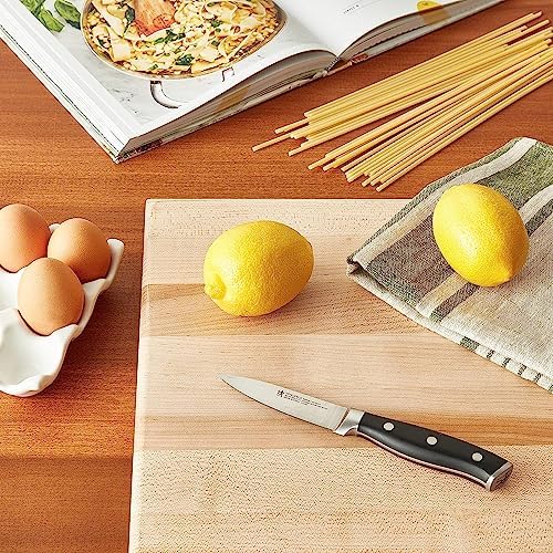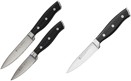 Experience precision and craftsmanship with this paring knife set, featuring a 2-piece set (3-inch and 4-inch knives) and a 3.5-inch paring knife. Crafted from forged German stainless steel and informed by over 100 years of Henckels knife mastery, these knives are designed for precision cutting, detailed prep work, and lasting performance.