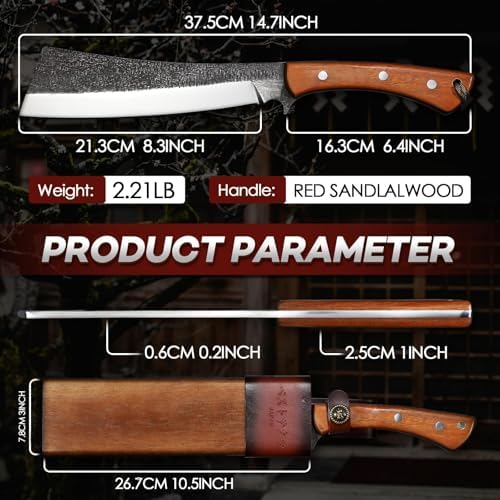 Premium High Carbon Steel Blade: 10.5-inch blade, 3-inch wide, 0.2-inch thick for maximum cutting performance