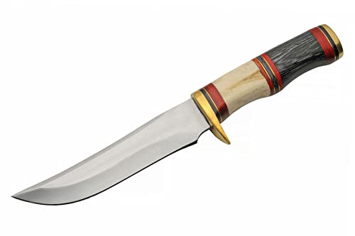 The Outdoor Hunting Knife with bone and wood handle is a premium fixed-blade skinner built for reliability in the field. With a robust 11.5-inch full tang stainless steel blade, this knife excels at outdoor cutting, hunting, and camping tasks. Its traditional handle and leather sheath make it both functional and visually striking.