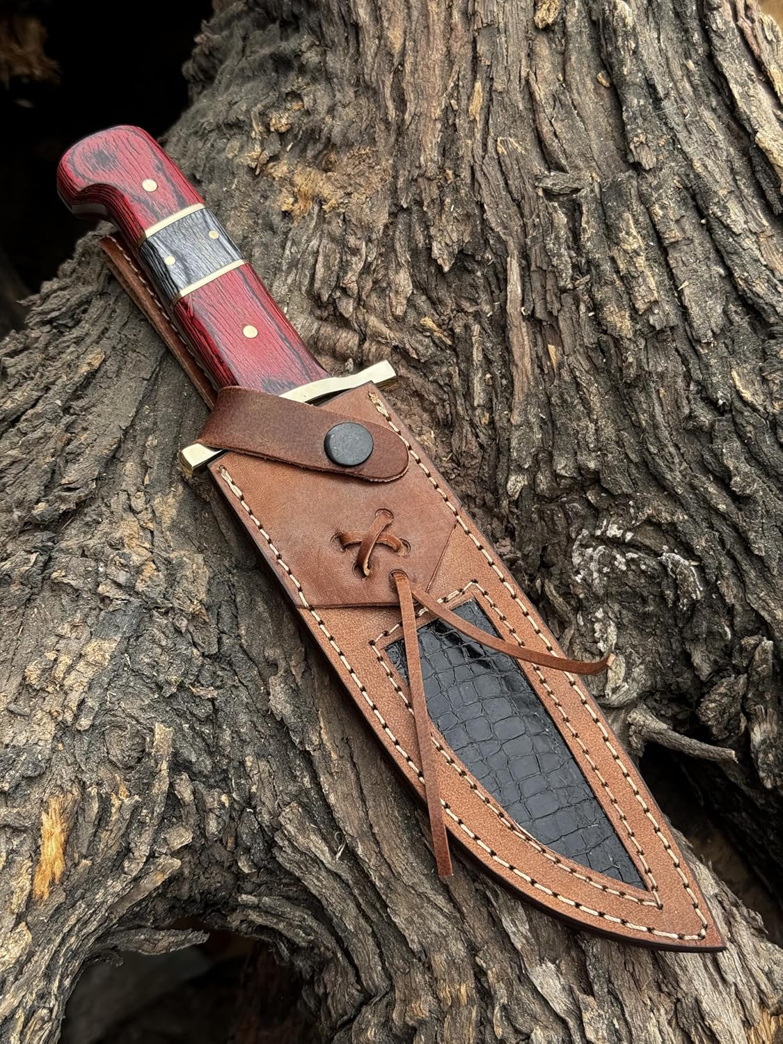 Hand-stitched camel leather sheath included