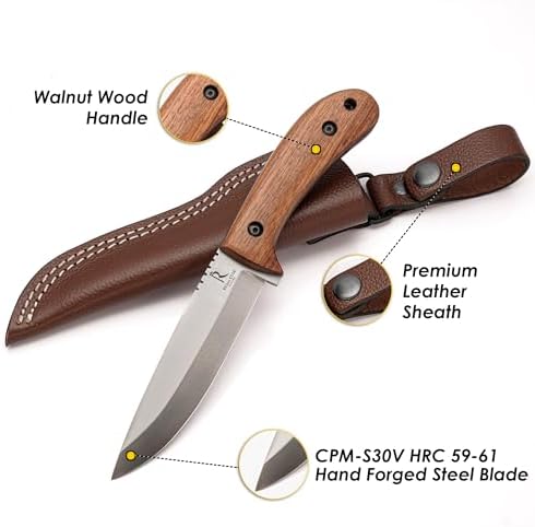 Hand-forged CPM-S30V steel blade with HRC 59-61 hardness for lasting sharpness
