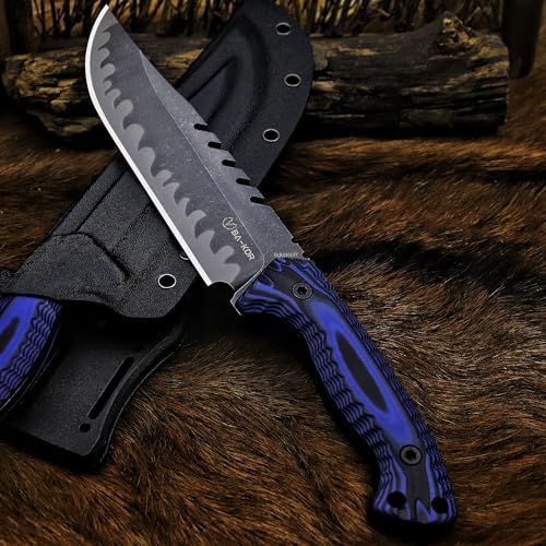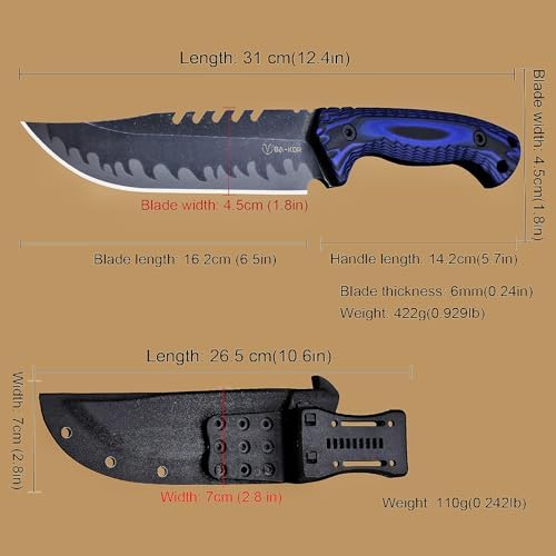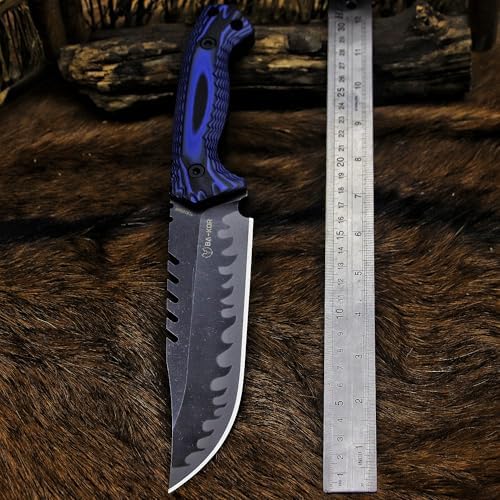 Built for extreme outdoor performance, the Full Tang Fixed Blade Hunting Knife delivers unmatched durability with its 6mm one-piece forged 9CR18MoV steel construction. Designed for hunters, campers, and survivalists, this rugged blade features a stonewashed sawback design and a secure G10 handle. Complete with a Kydex sheath and ferro rod, it’s a dependable companion for wilderness adventures.