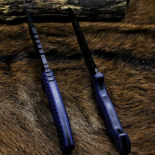 • Blue and black striped handle design for bold tactical style